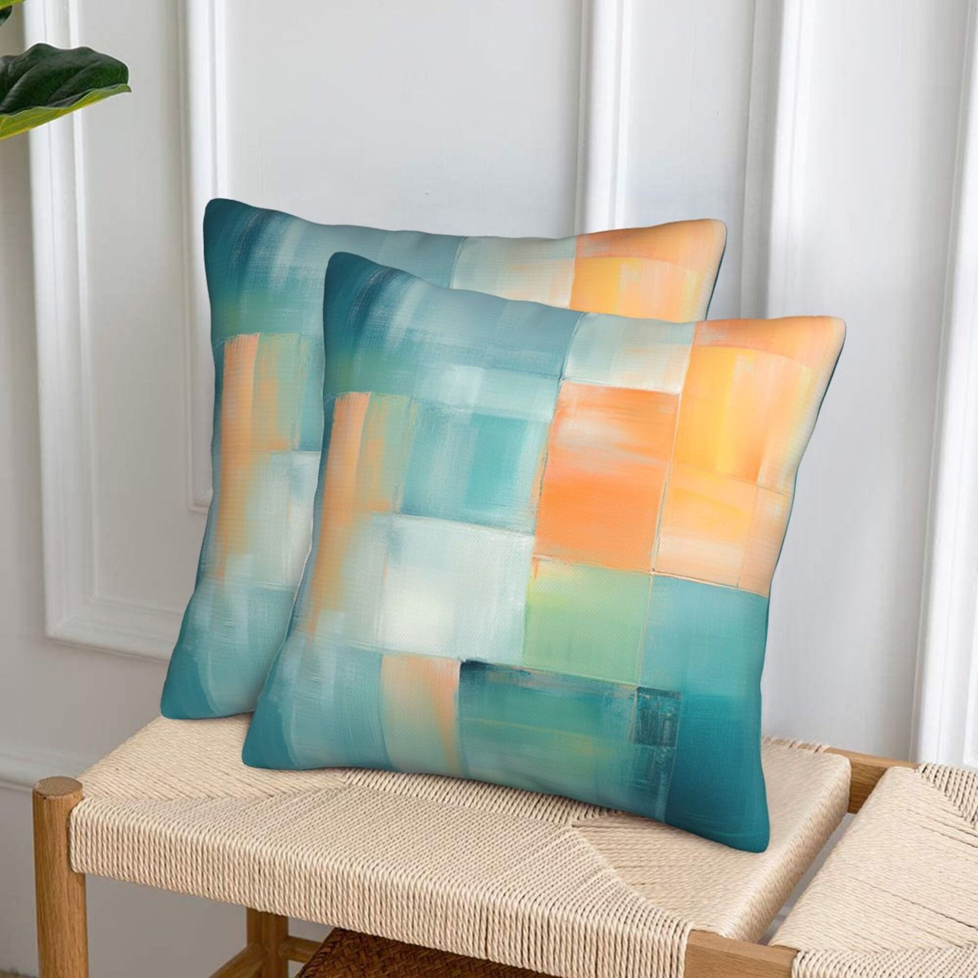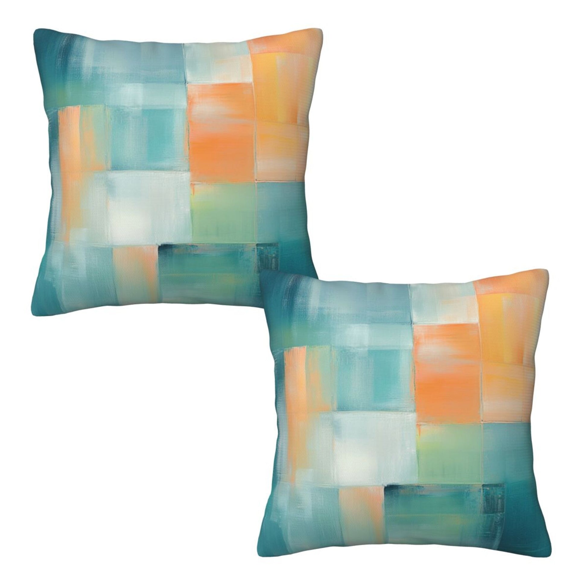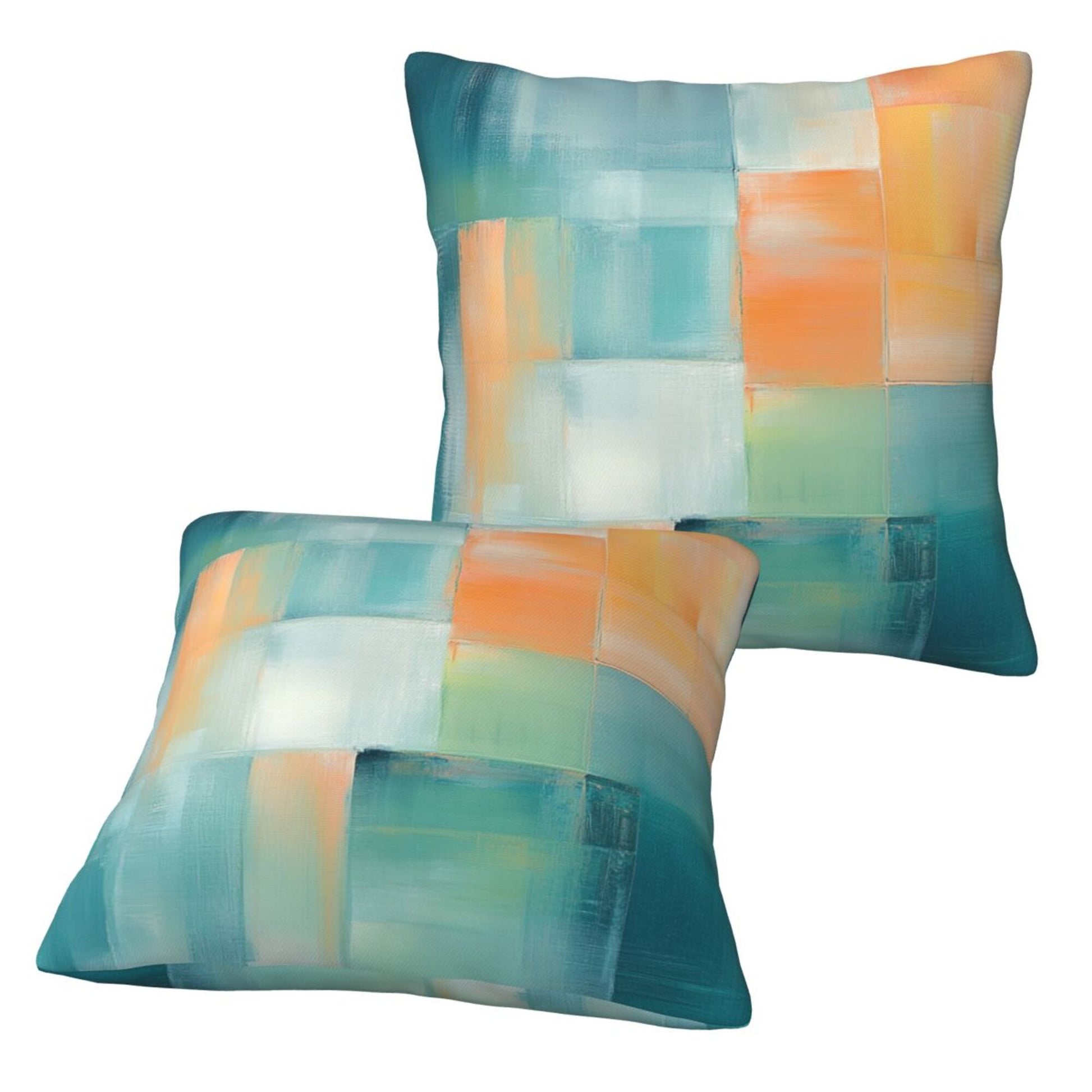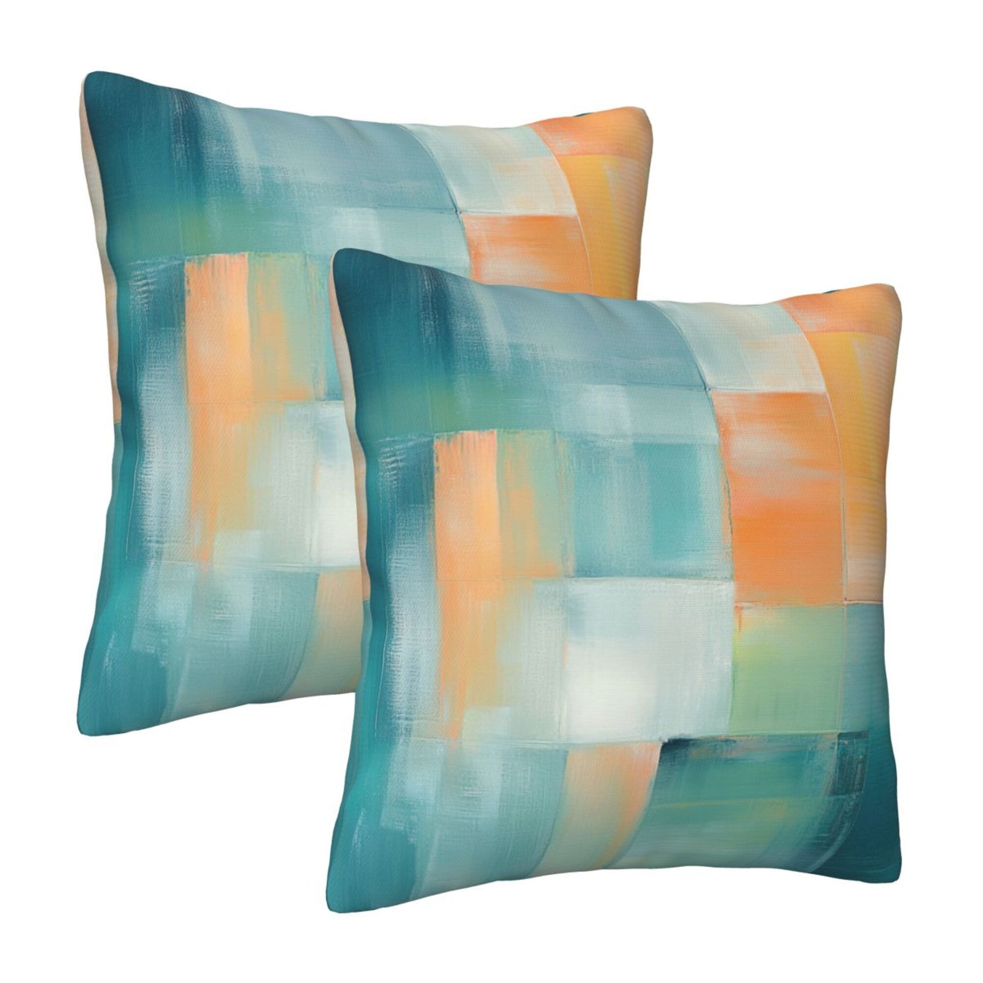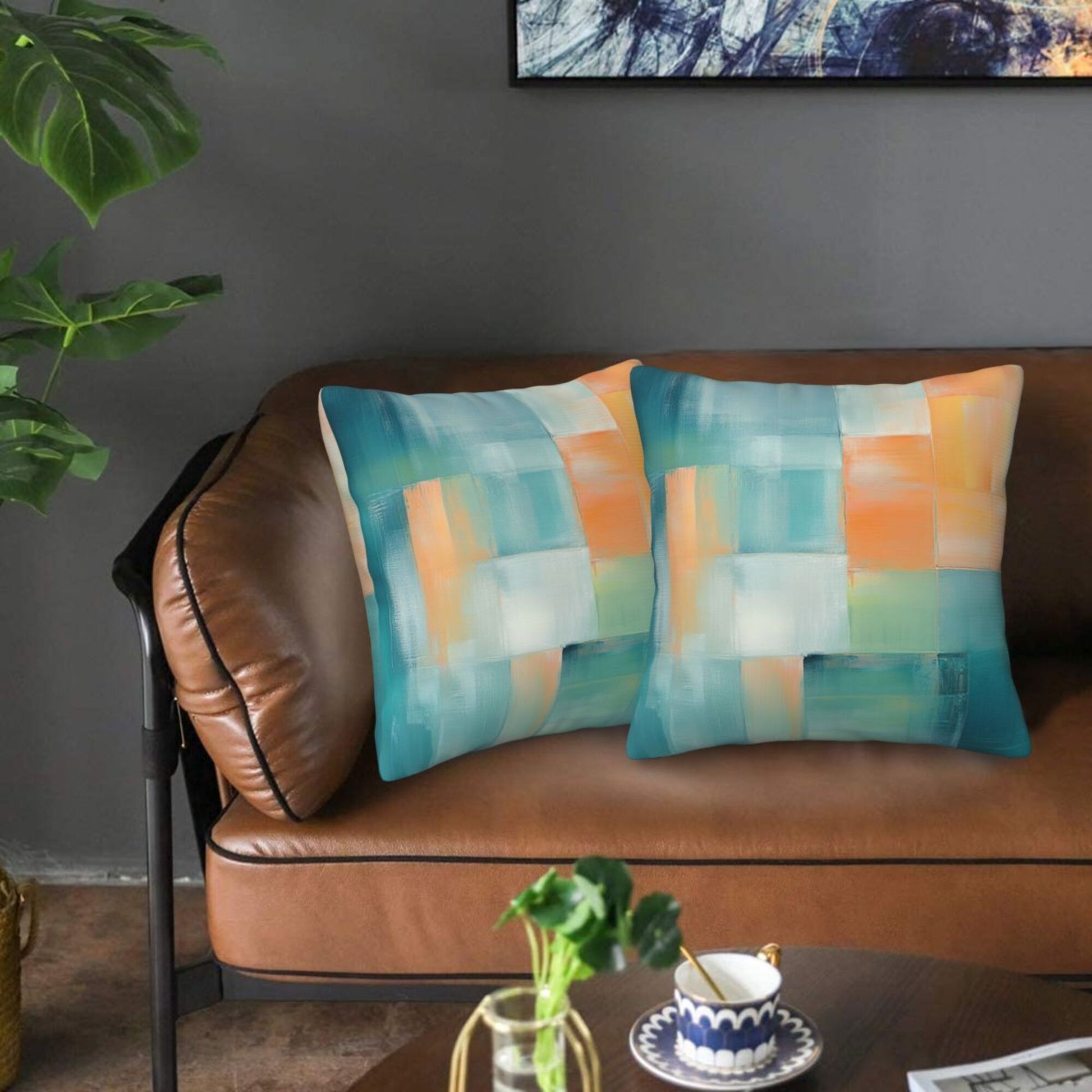 Transform your home into a stylish and serene sanctuary with this 2-pack of 18x18 inch (45x45 cm) throw pillow covers, thoughtfully designed to blend modern art aesthetics with everyday comfort. The design features an abstract grid of soft brushstrokes that transition between calming teal, soothing mint green, bright amber, and gentle ivory – a palette inspired by contemporary canvas painting. The result is a visually rich and inviting texture that brings life and elegance to any interior setting.