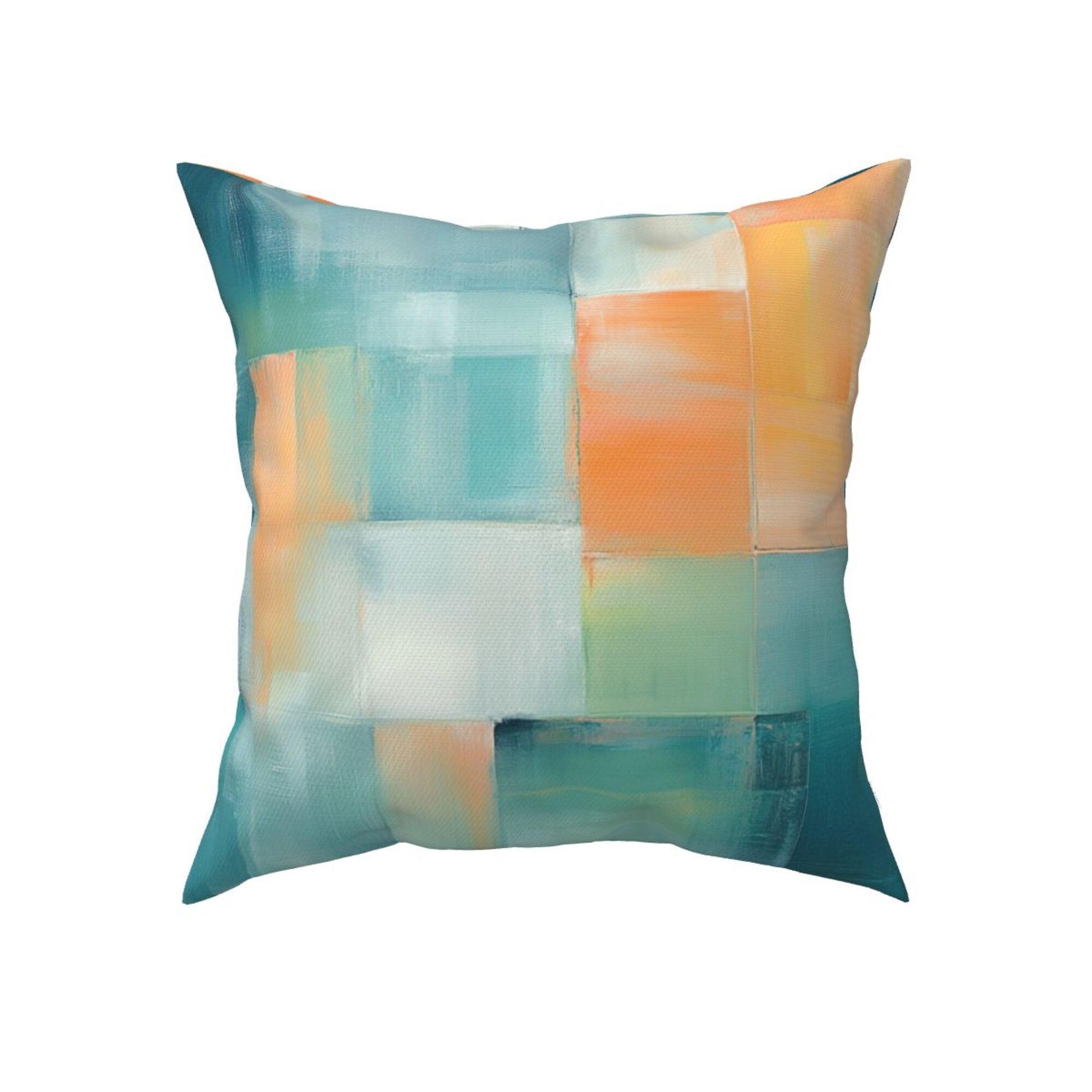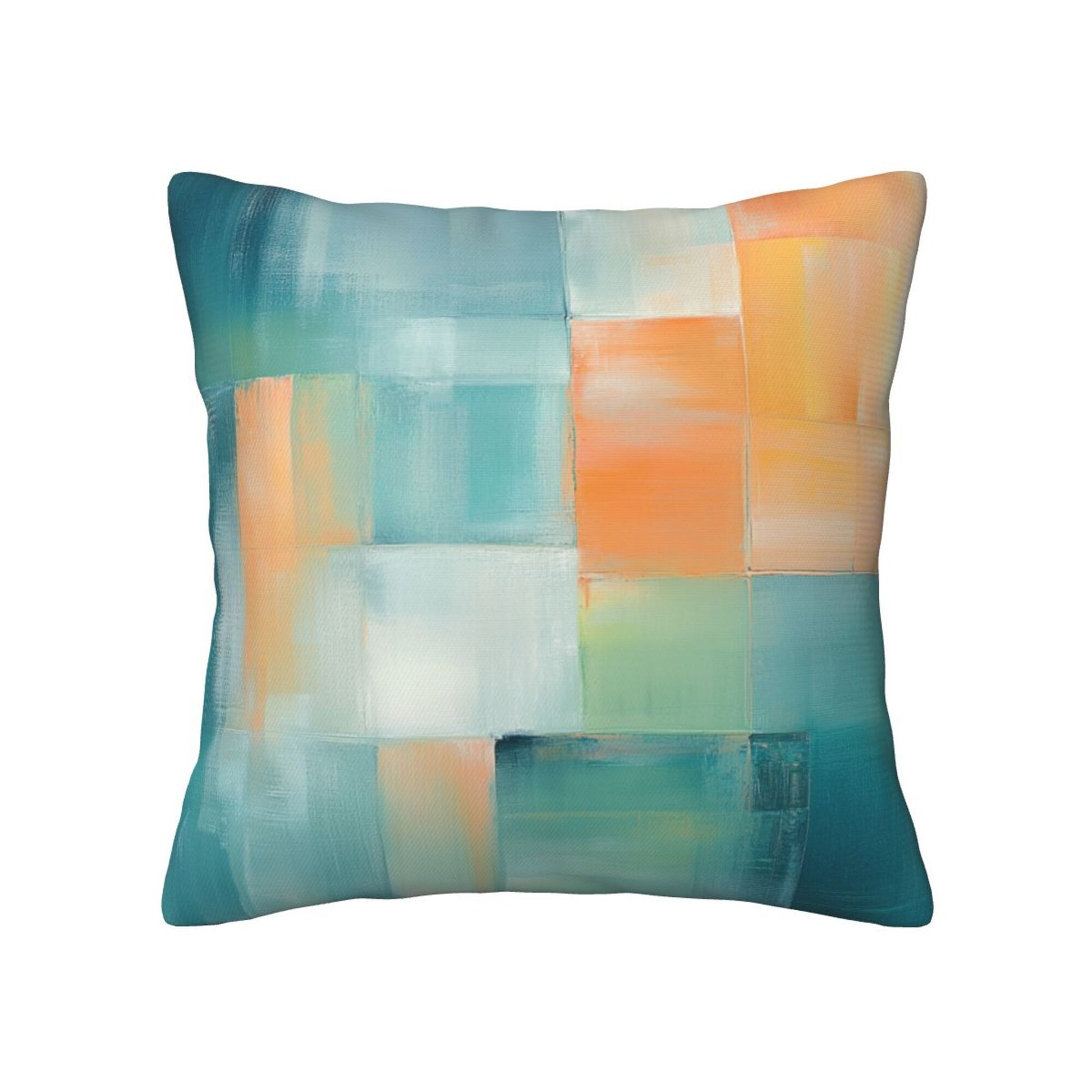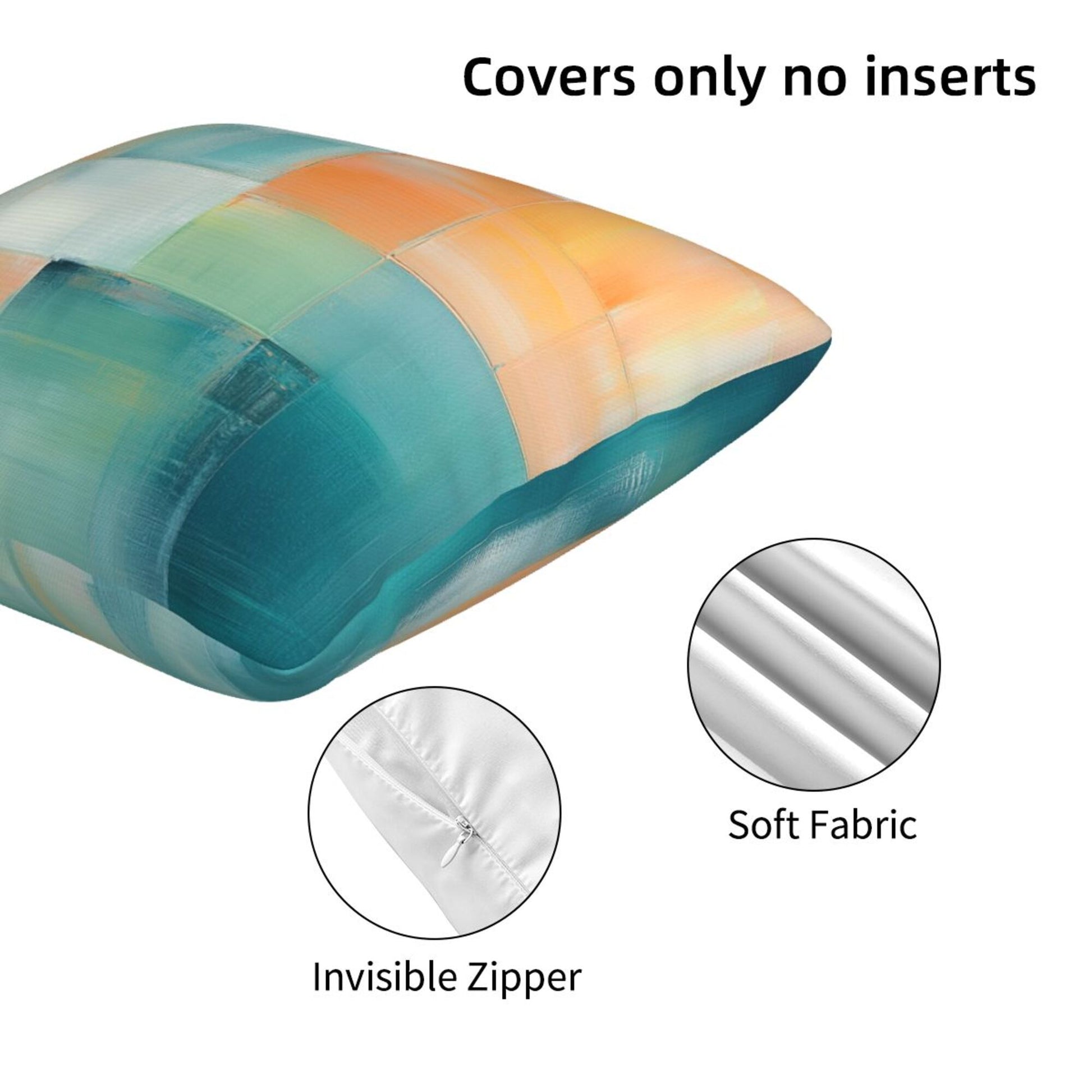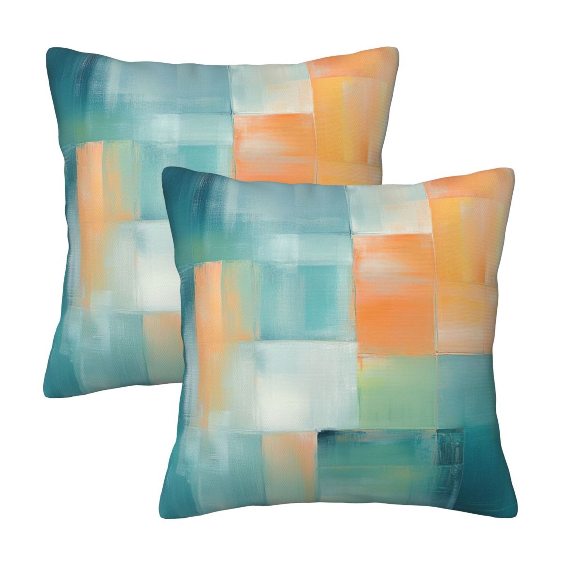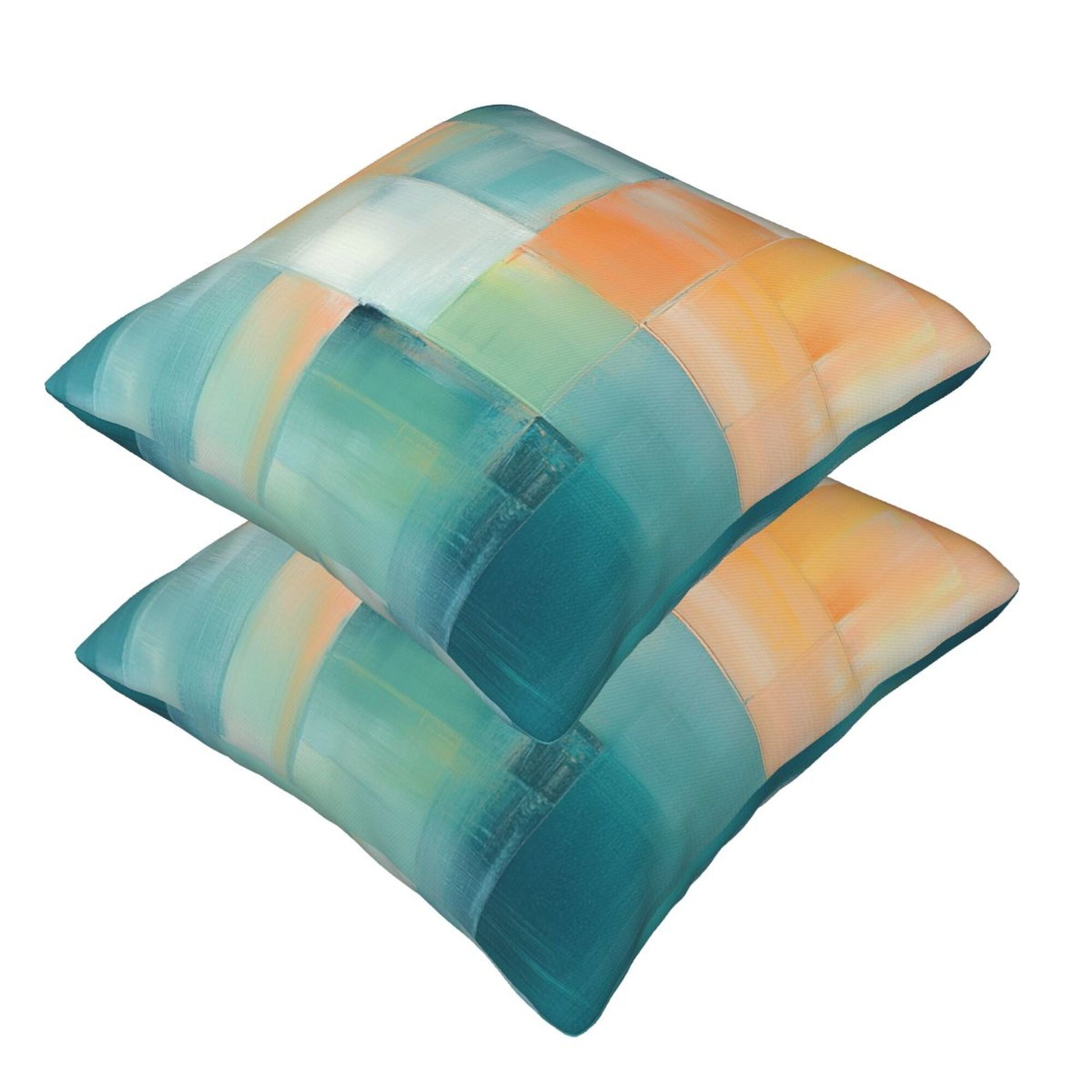 Transform your home into a stylish and serene sanctuary with this 2-pack of 18x18 inch (45x45 cm) throw pillow covers, thoughtfully designed to blend modern art aesthetics with everyday comfort. The design features an abstract grid of soft brushstrokes that transition between calming teal, soothing mint green, bright amber, and gentle ivory – a palette inspired by contemporary canvas painting. The result is a visually rich and inviting texture that brings life and elegance to any interior setting.
