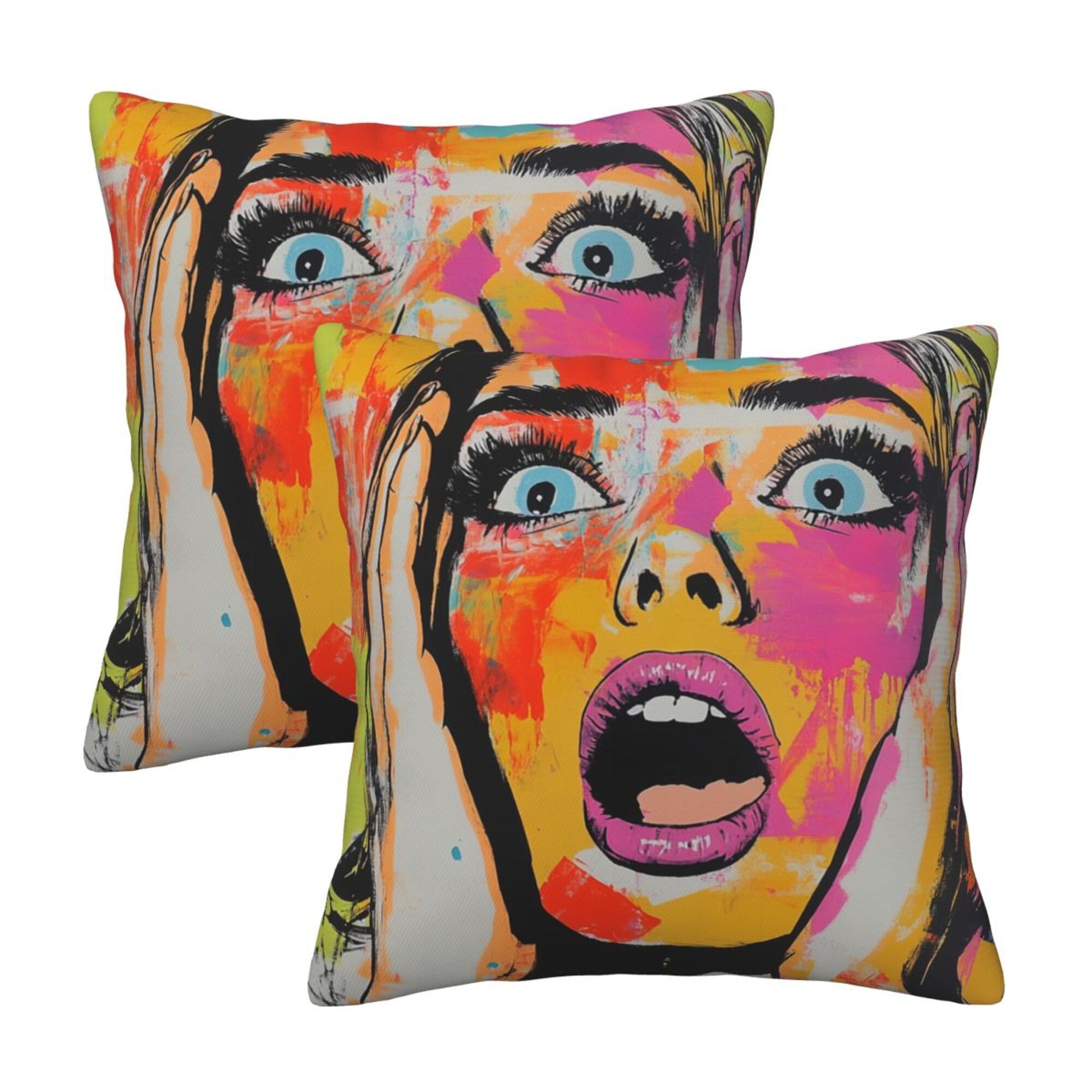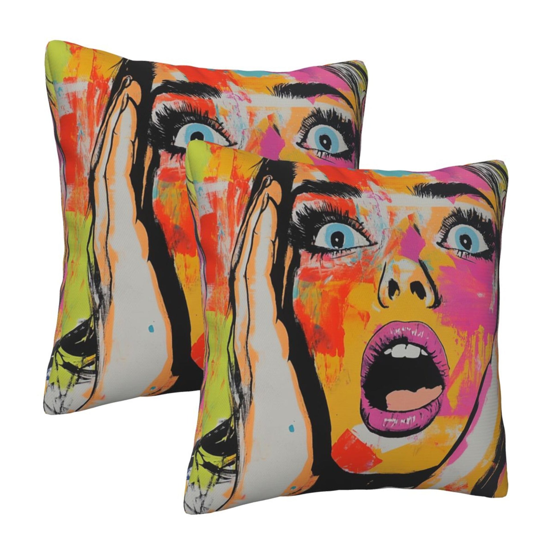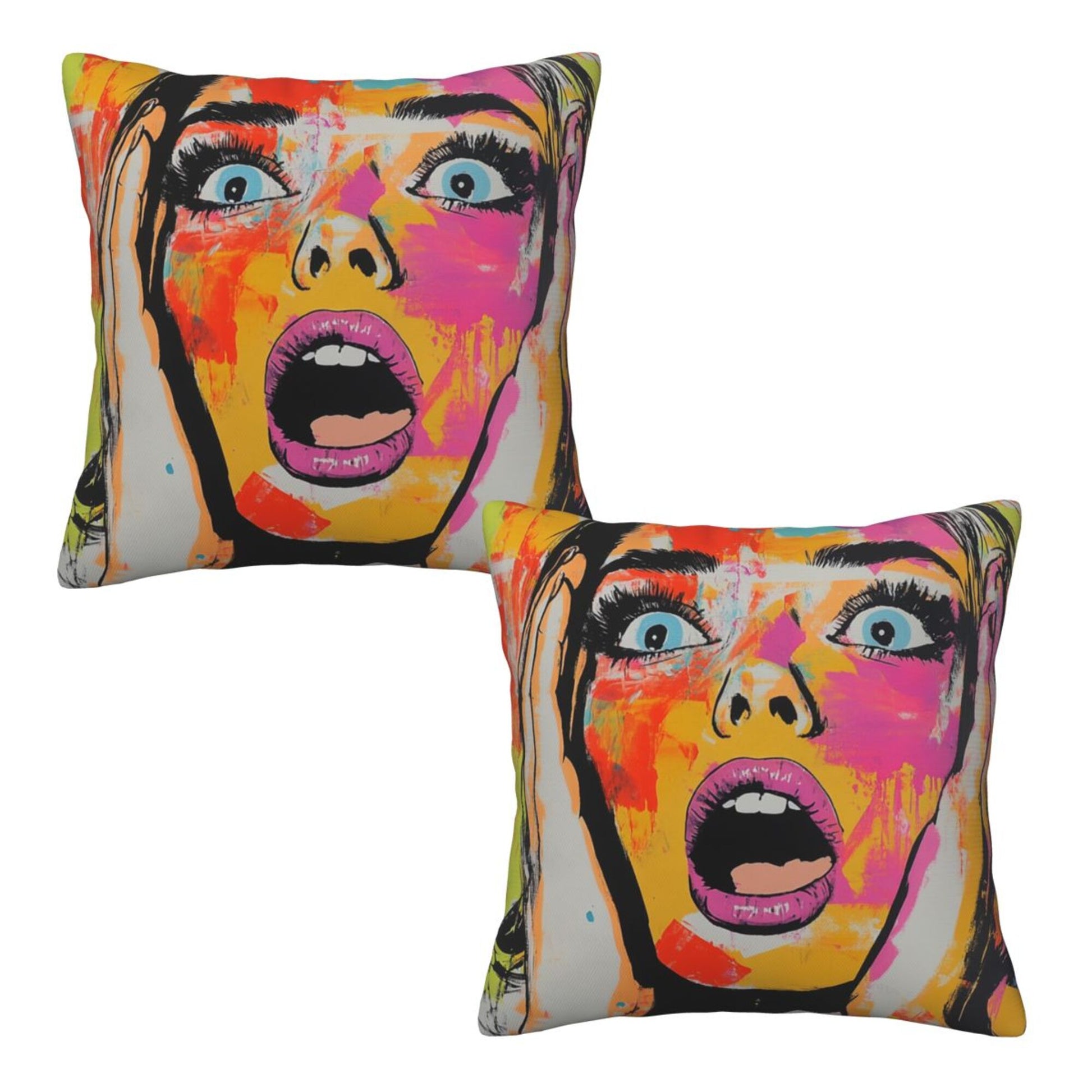2-Pack Graffiti Art Pillow Covers 18x18 Inch|Shock Pop Girl Design Throw Pillow Cases|Bold Street-Style Decorative Cushion Covers