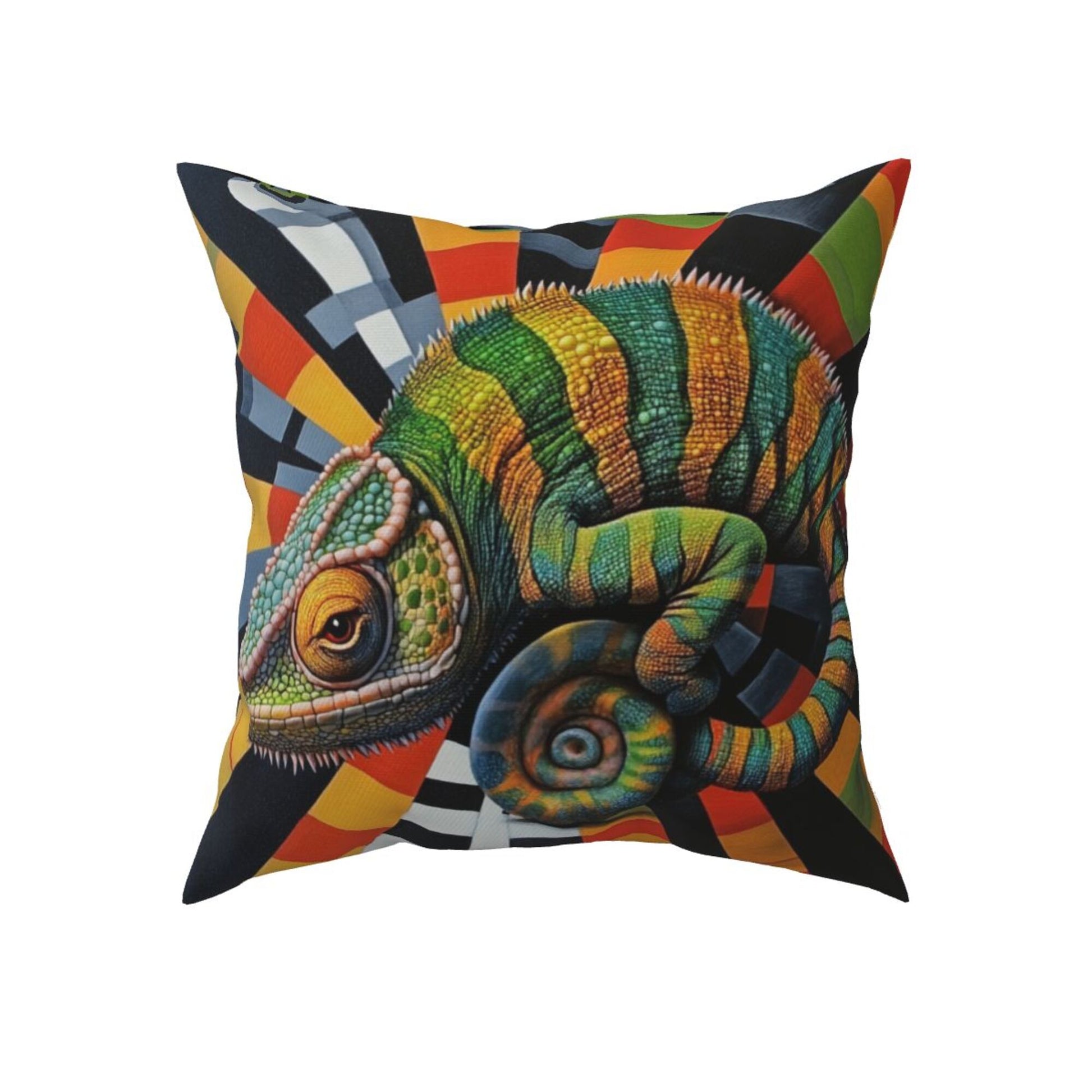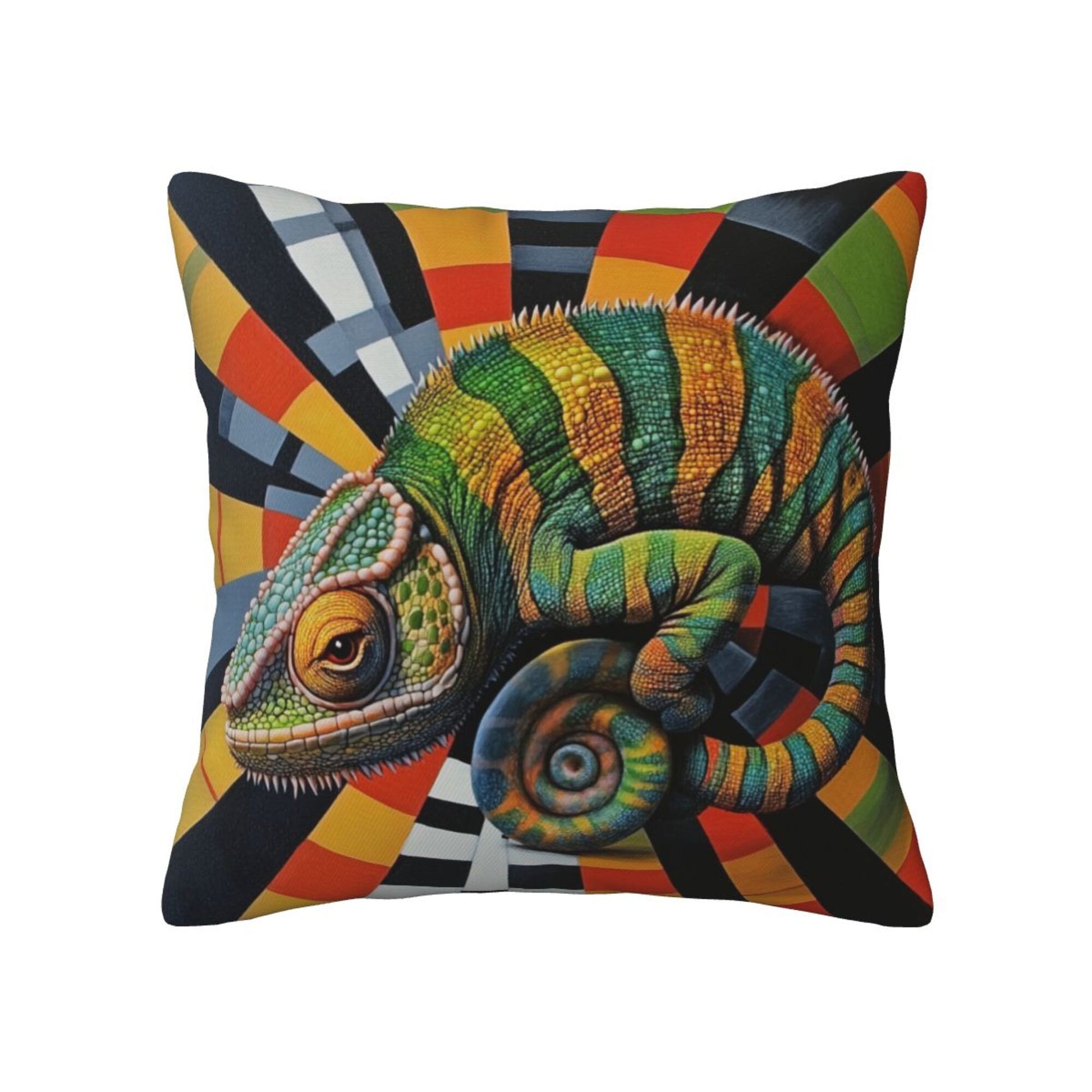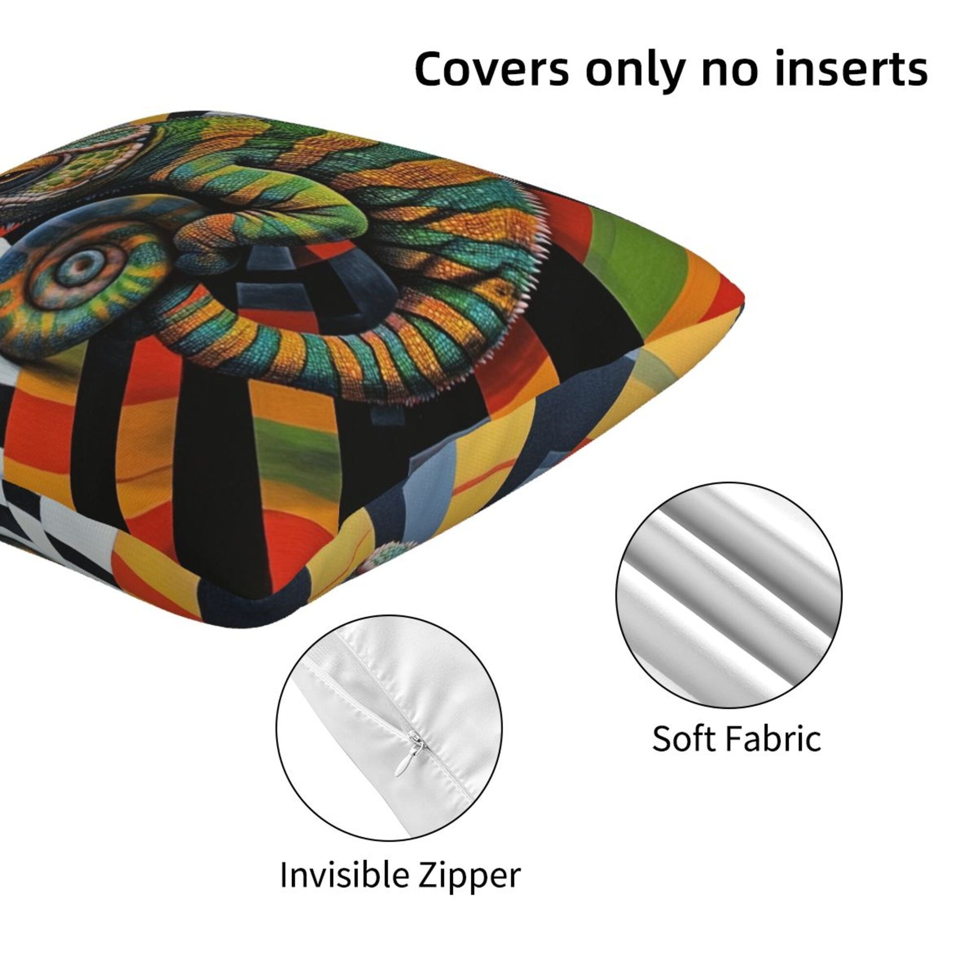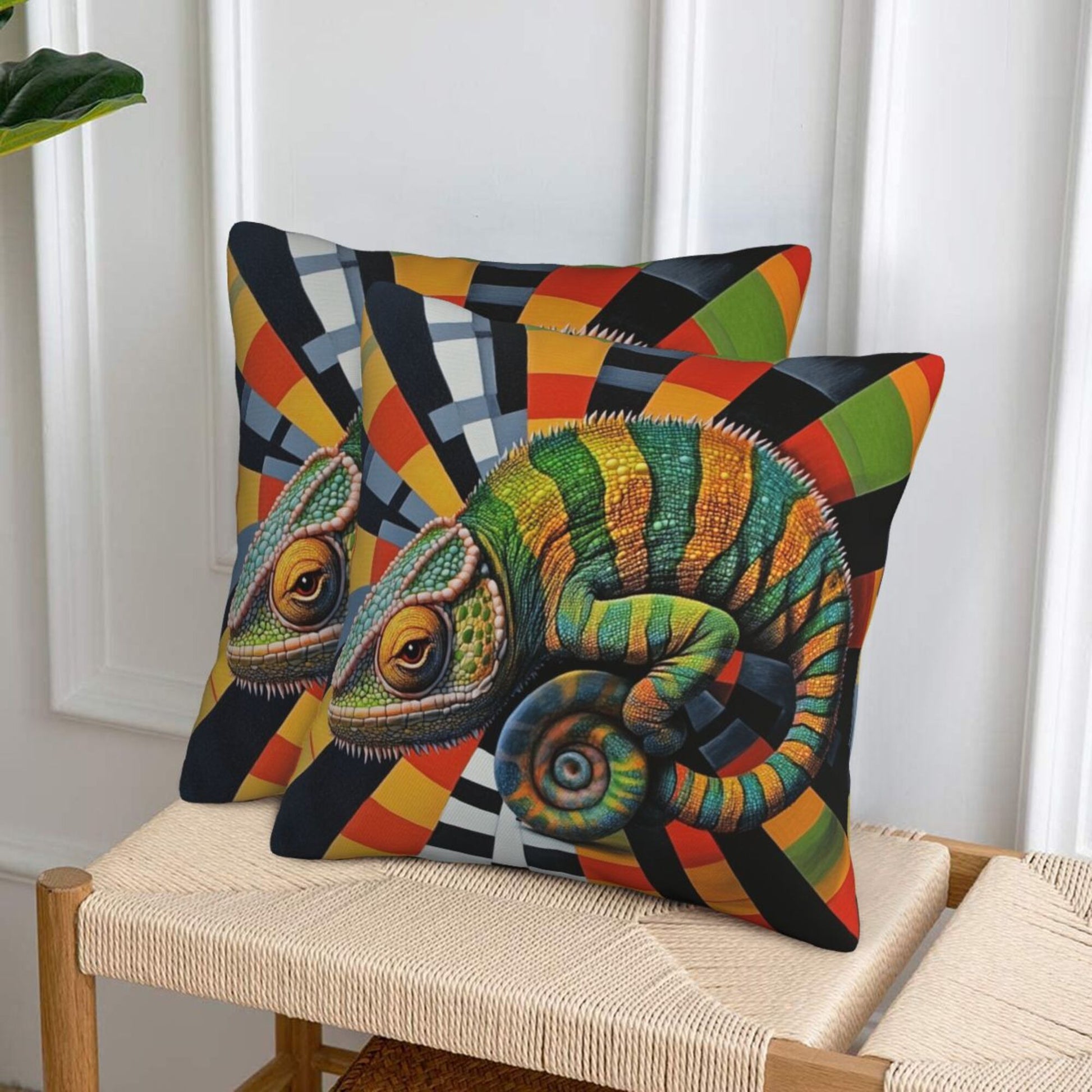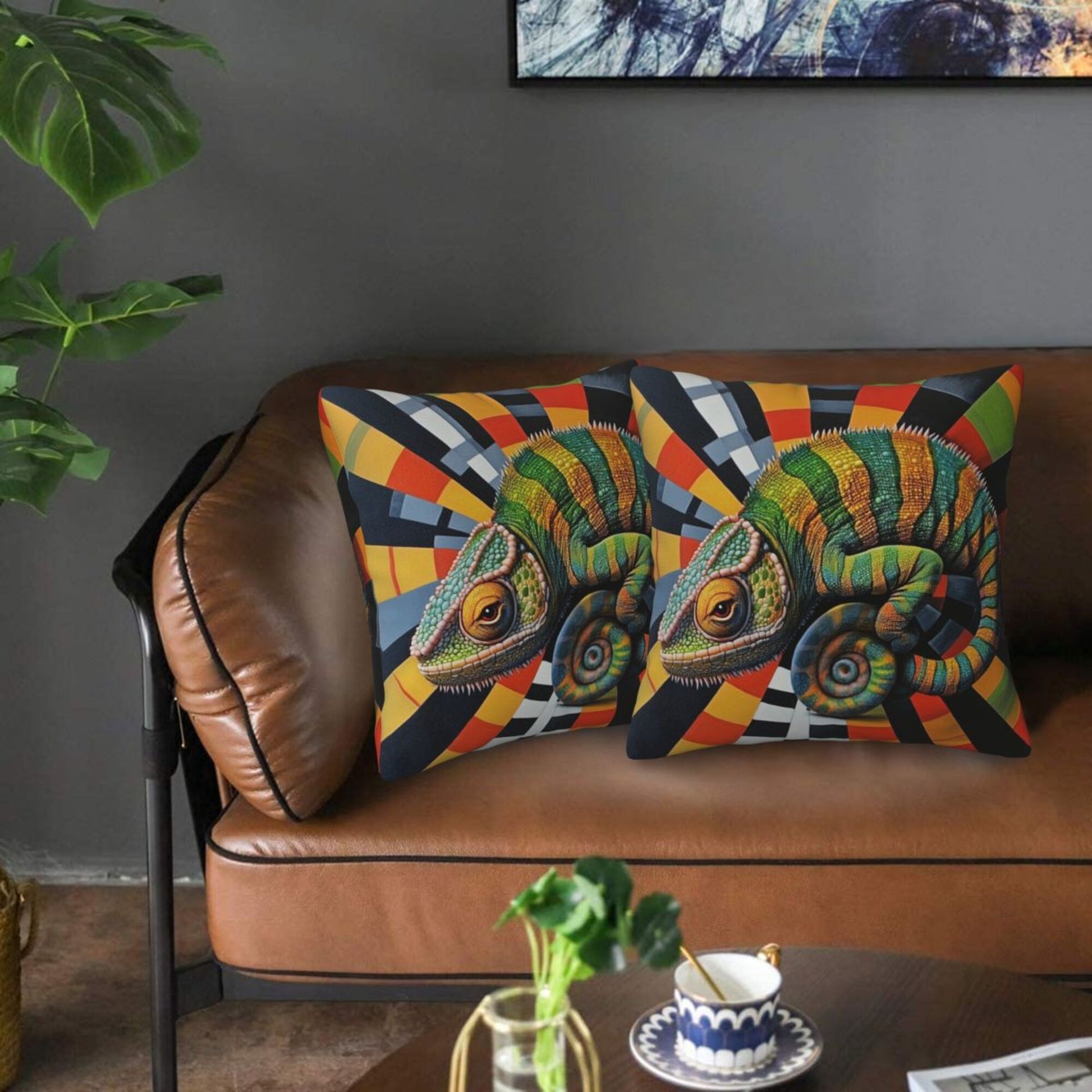 Make a bold artistic statement with this set of 2 18x18 inch (45x45cm) decorative throw pillow covers featuring a vivid chameleon art design. The eye-catching abstract illustration in vibrant colors is digitally printed on premium quality polyester canvas fabric, ensuring long-lasting clarity and visual impact. Whether you're revamping your living space or simply adding a pop of personality, these cushion covers offer both function and fashion.