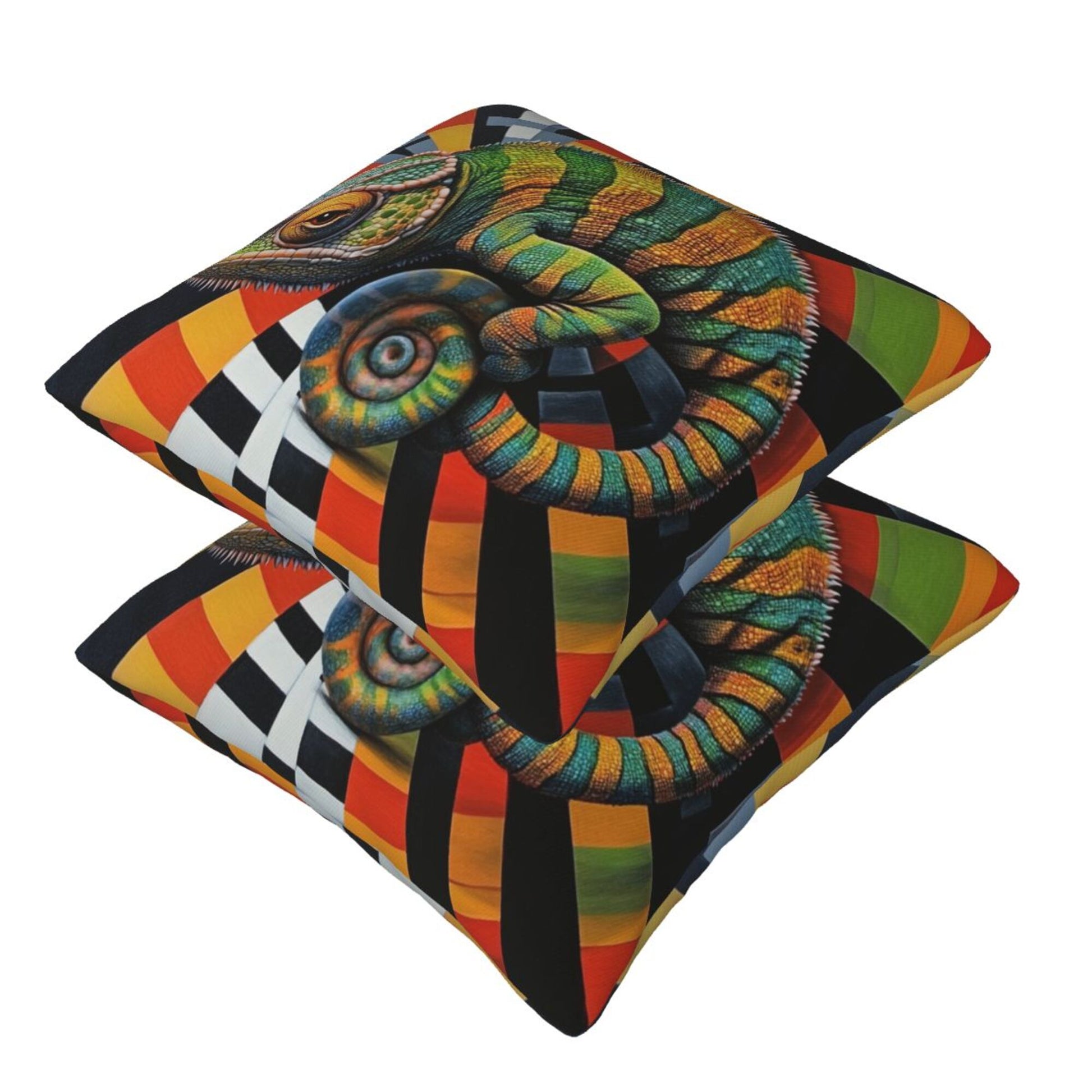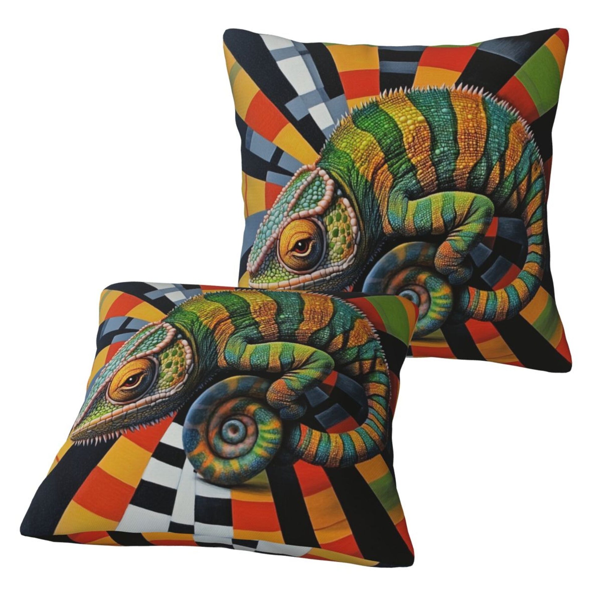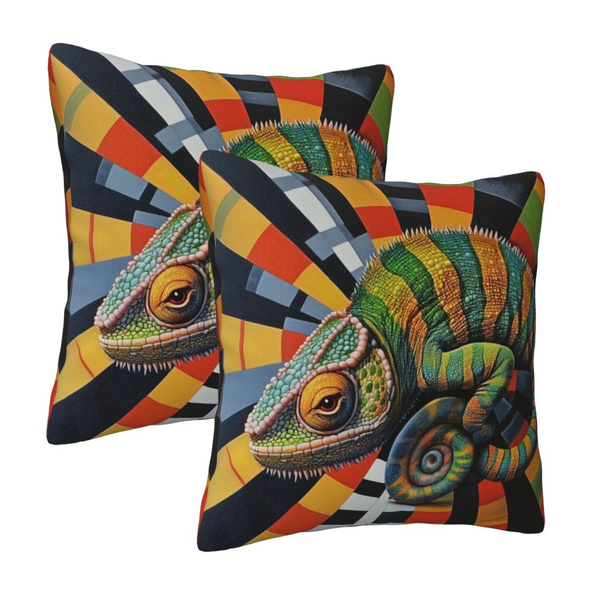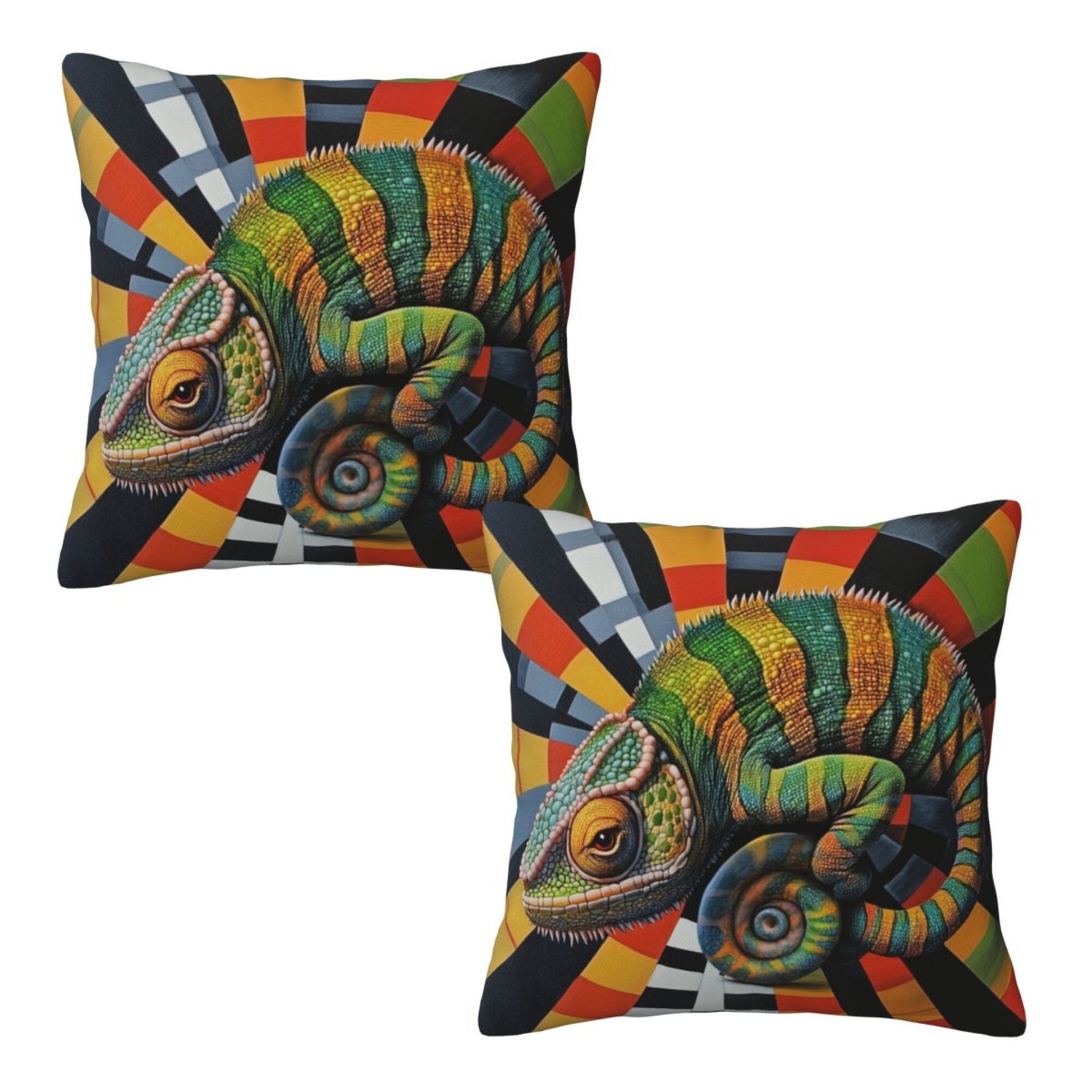 Set of 2 Chameleon Art Throw Pillow Covers 18x18 Inch Decorative Square Cushion Covers for Sofa, Couch, Bed