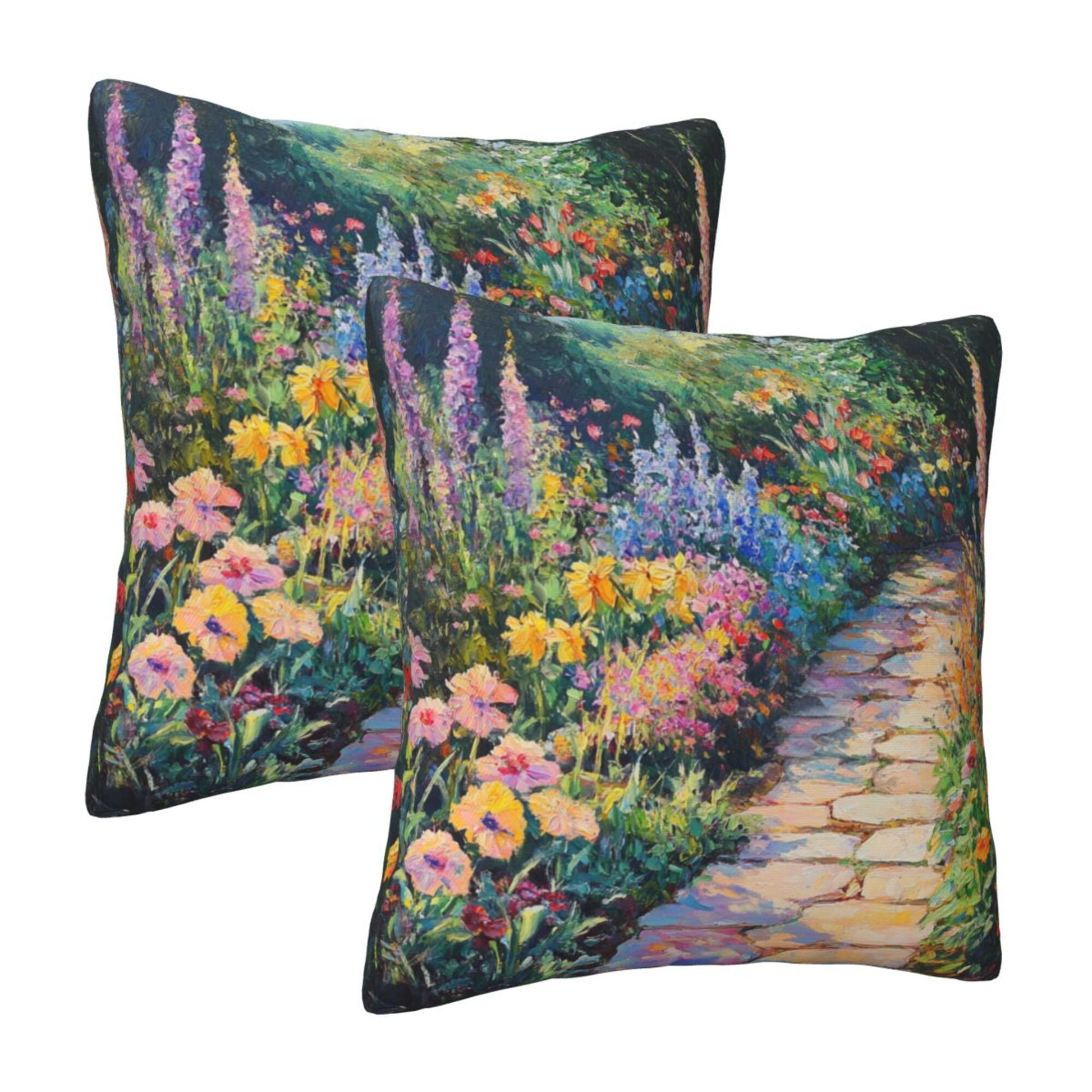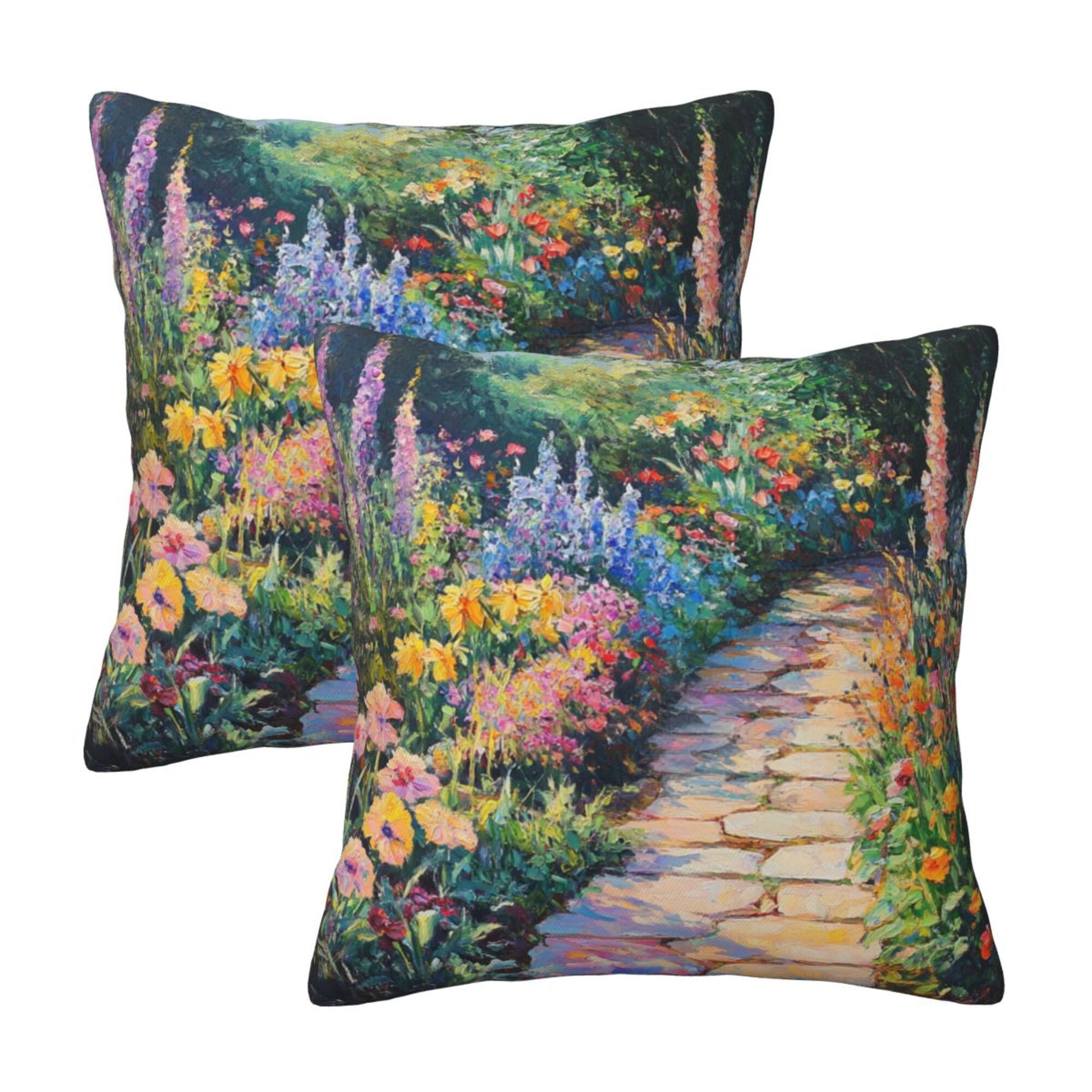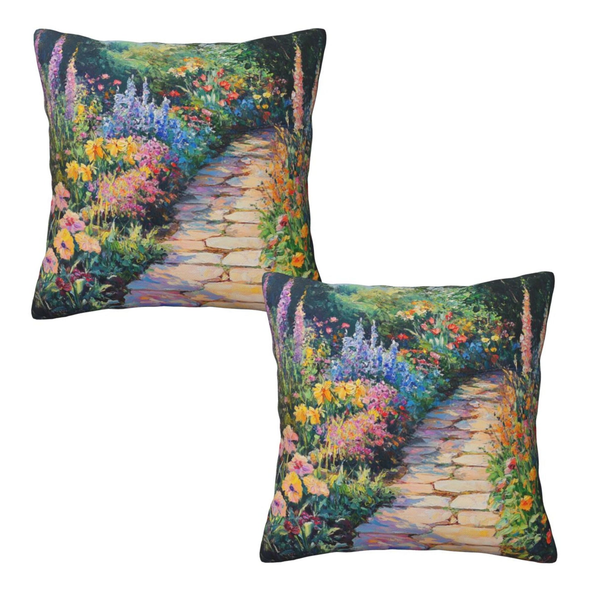 Set of 2 Decorative Pillow Covers – 18x18 Inch Garden Path Oil Painting Style Cushion Cases for Sofa, Bed, Living Room