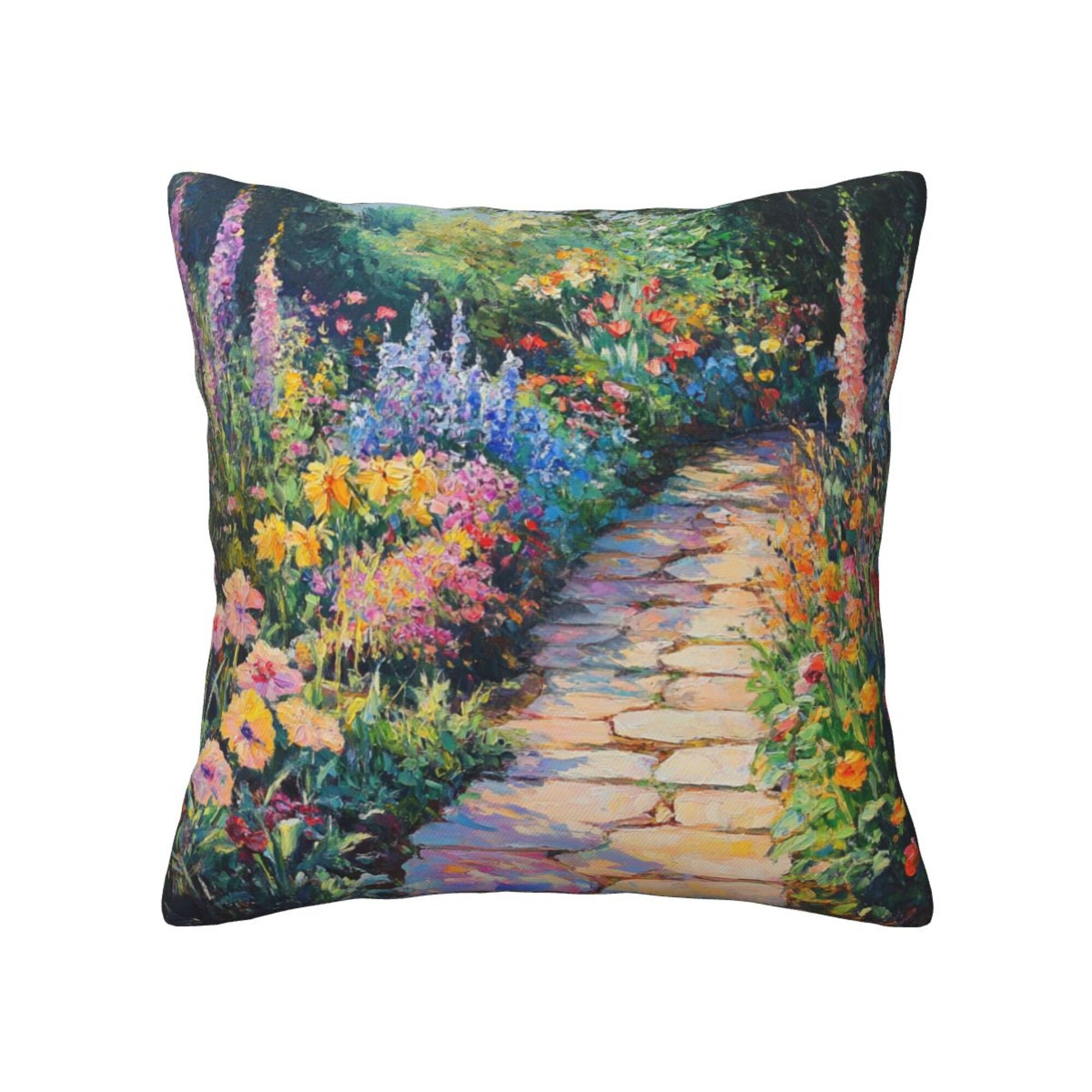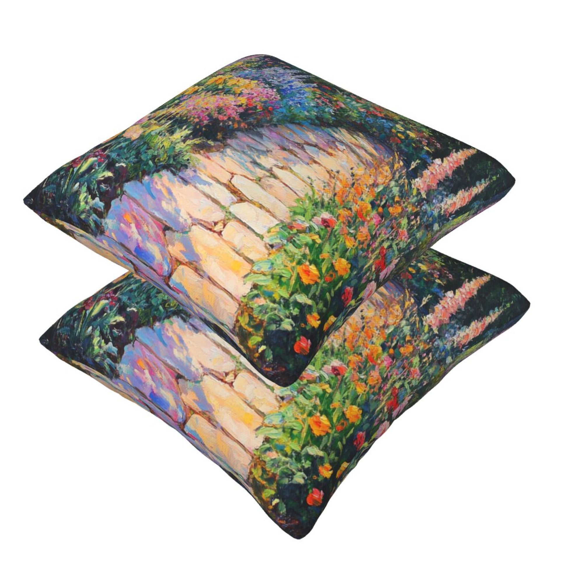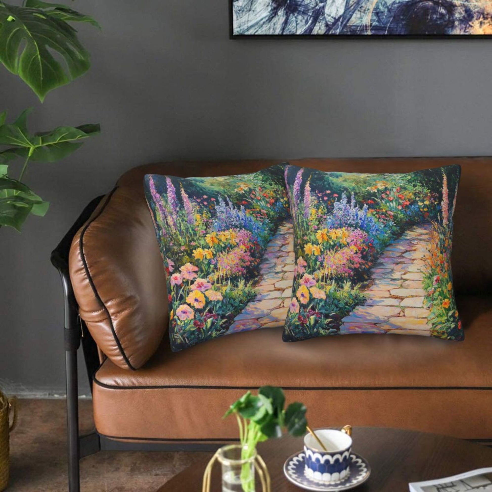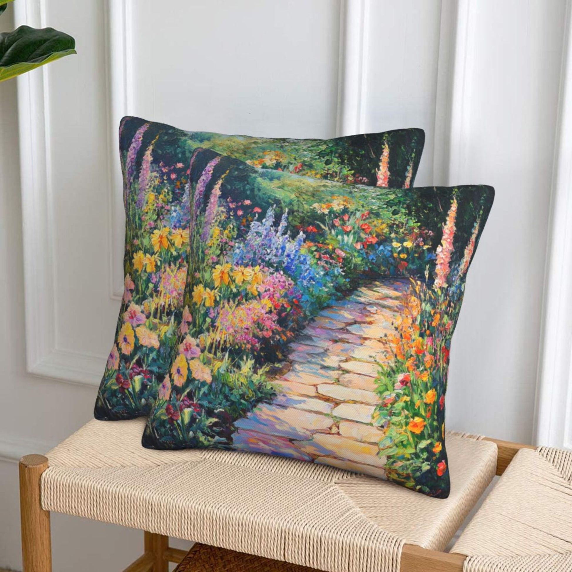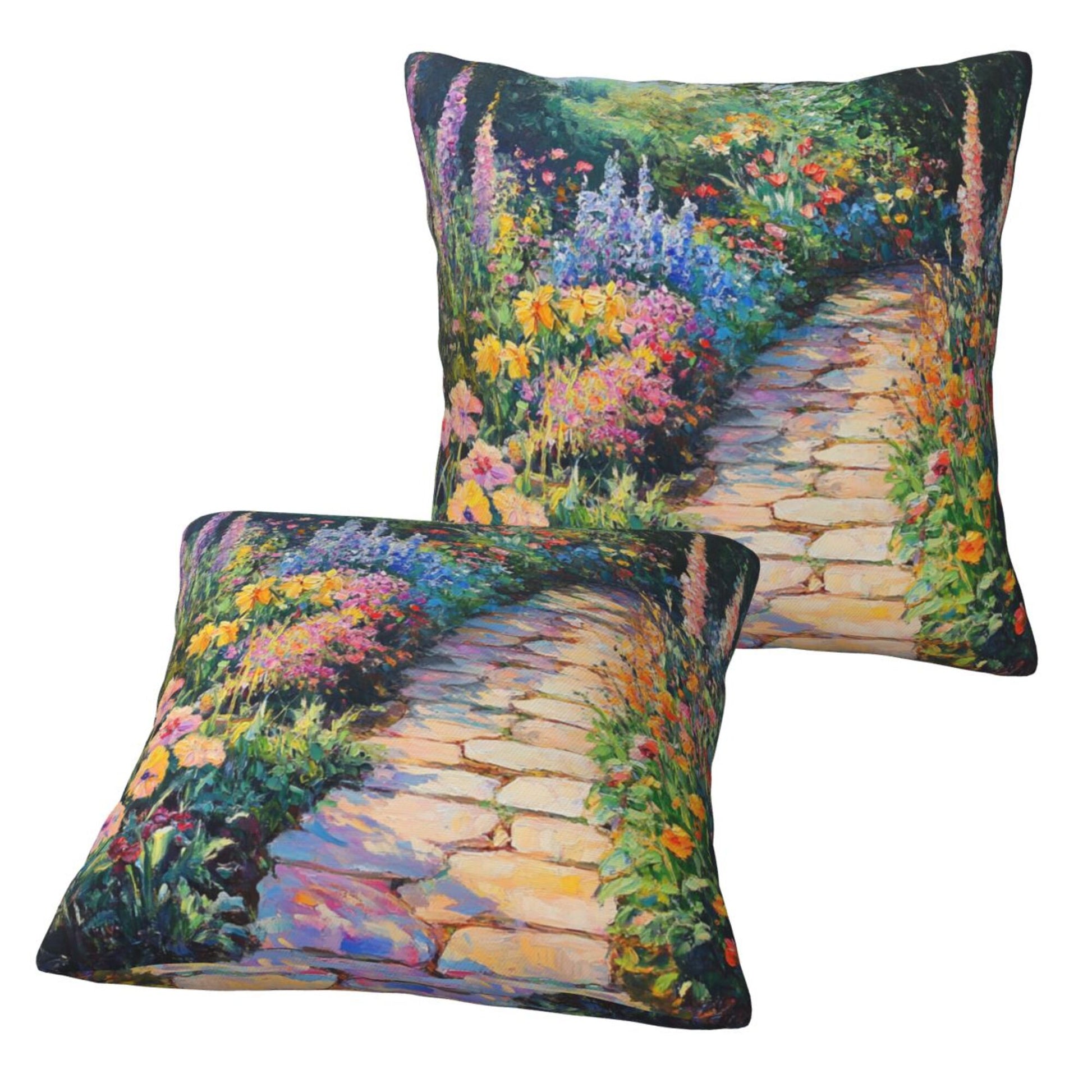 Bring a touch of nature and fine art into your home with this set of 2 pillow covers, featuring a stunning garden path scene rendered in oil painting style. Measuring 18x18 inches (45x45cm), each cover captures the vivid essence of blooming flowers along a winding stone path, blending vibrant colors and painterly brushstrokes to create a truly eye-catching piece of decor. Whether placed on a sofa, bed, or lounge chair, these pillow covers offer a romantic, tranquil charm perfect for modern, cottage, vintage, or artistic interiors.
