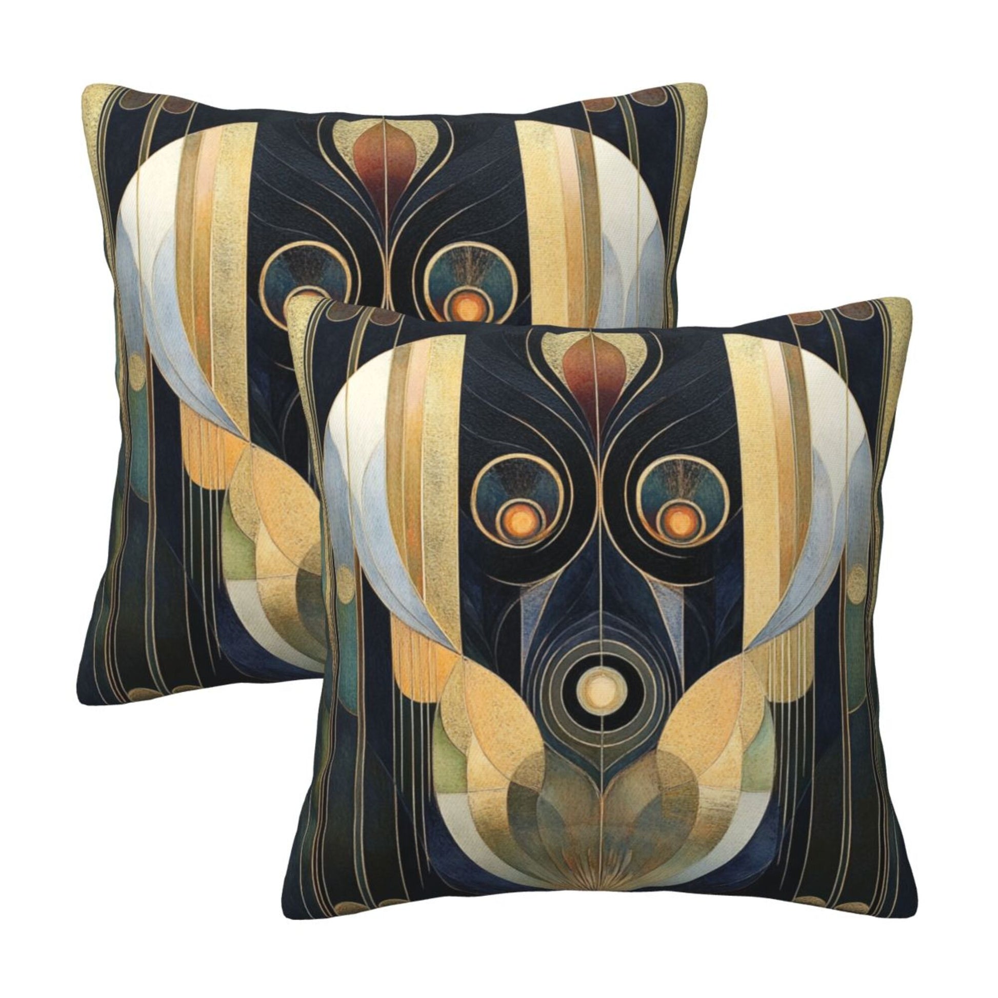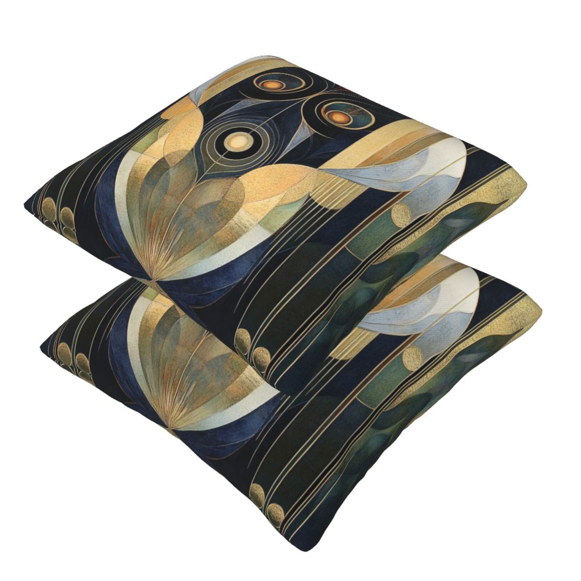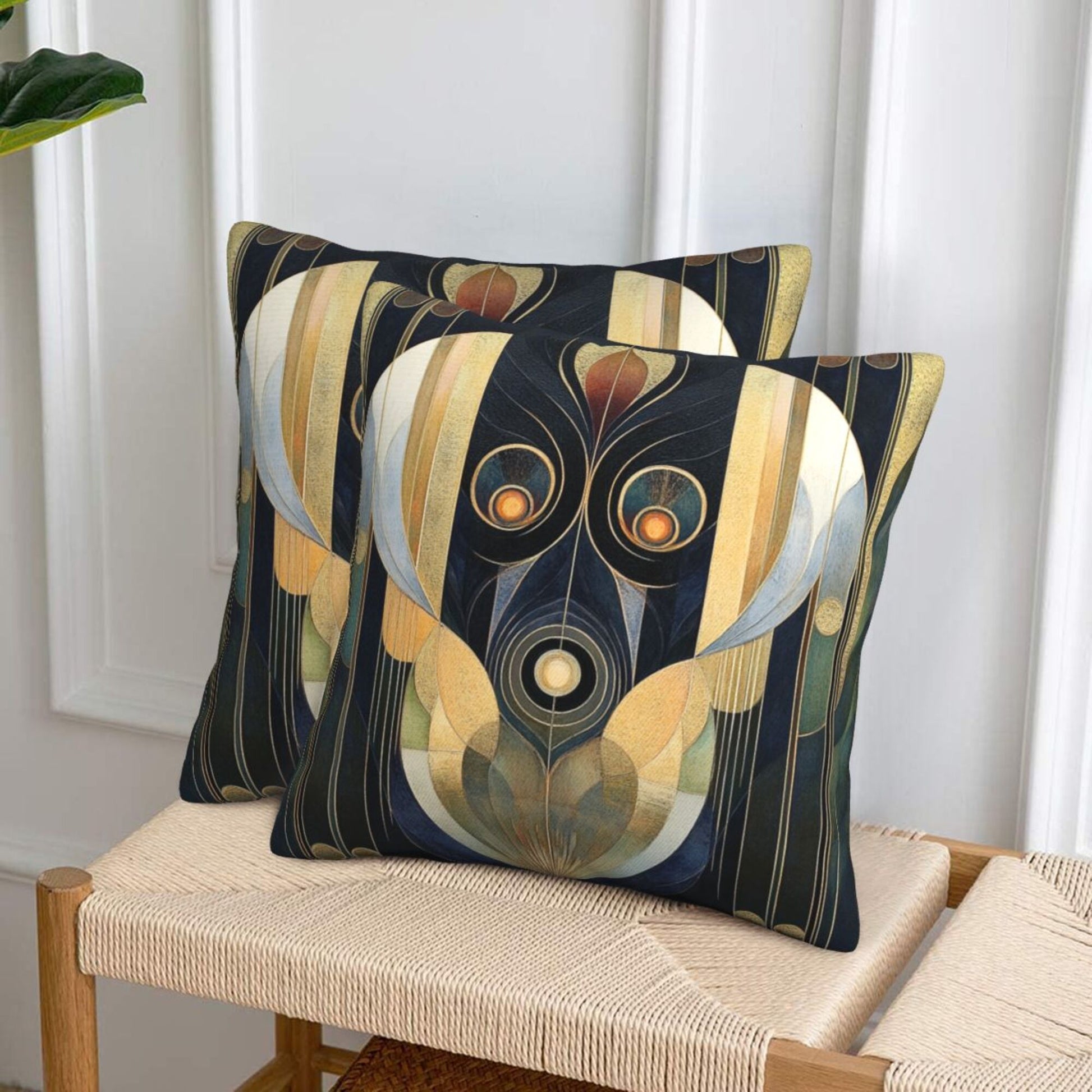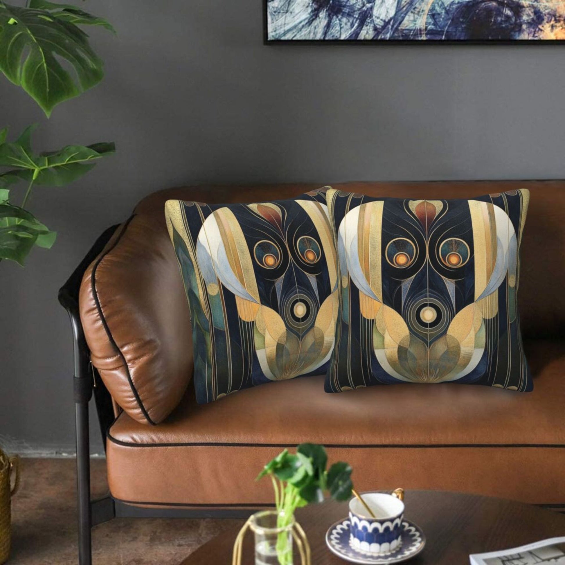 Inspired by the elegance of Art Deco and abstract geometry, this set of 2 throw pillow covers brings a touch of sophistication to any modern space. The intricate symmetrical design blends golden, copper, and silvery hues on a deep black background, creating a captivating metallic illusion that catches the eye from any angle. Its bold, luxurious aesthetic makes it an ideal accent piece for homes that embrace minimalism, modern chic, or artistic interior themes.