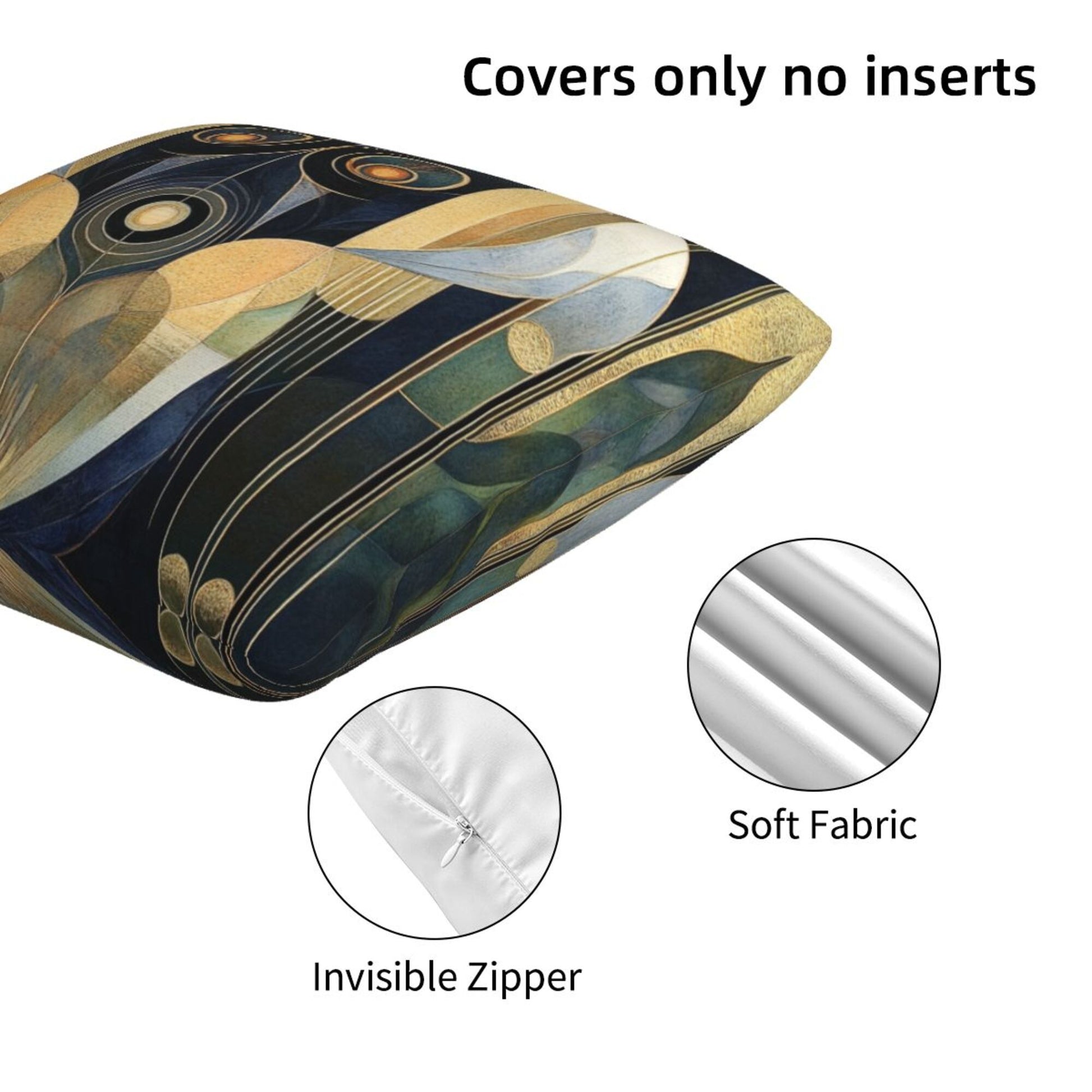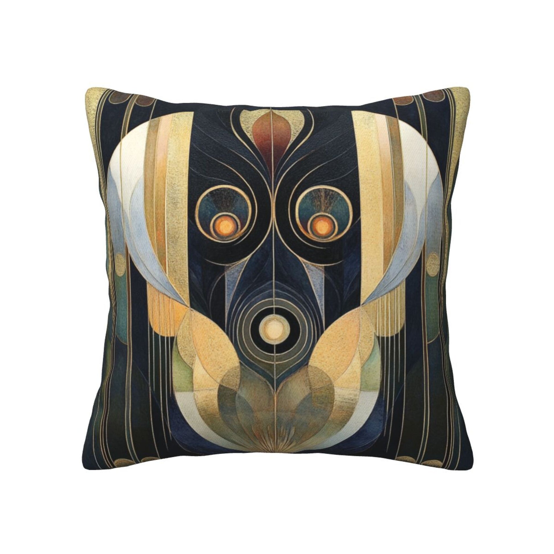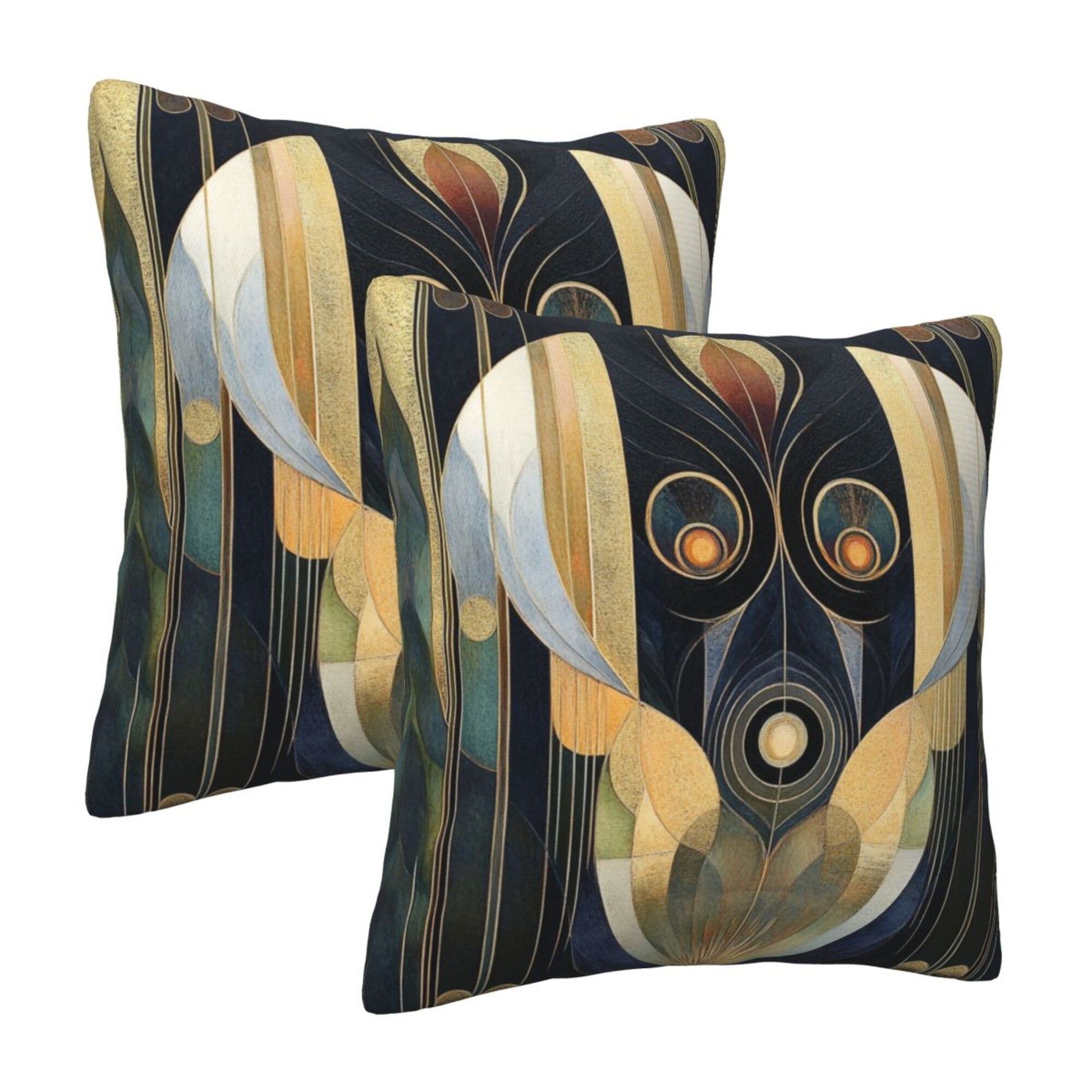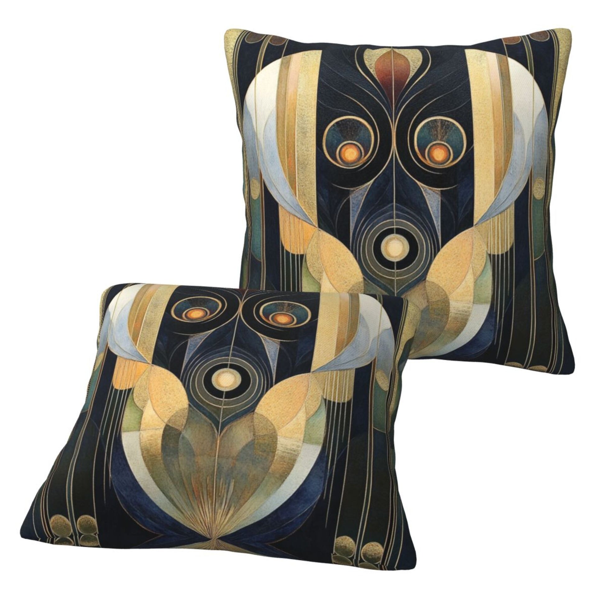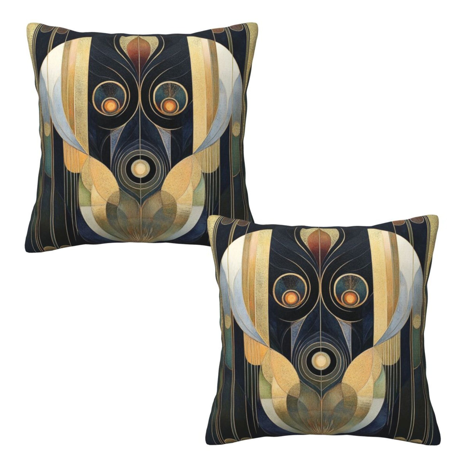 Inspired by the elegance of Art Deco and abstract geometry, this set of 2 throw pillow covers brings a touch of sophistication to any modern space. The intricate symmetrical design blends golden, copper, and silvery hues on a deep black background, creating a captivating metallic illusion that catches the eye from any angle. Its bold, luxurious aesthetic makes it an ideal accent piece for homes that embrace minimalism, modern chic, or artistic interior themes.