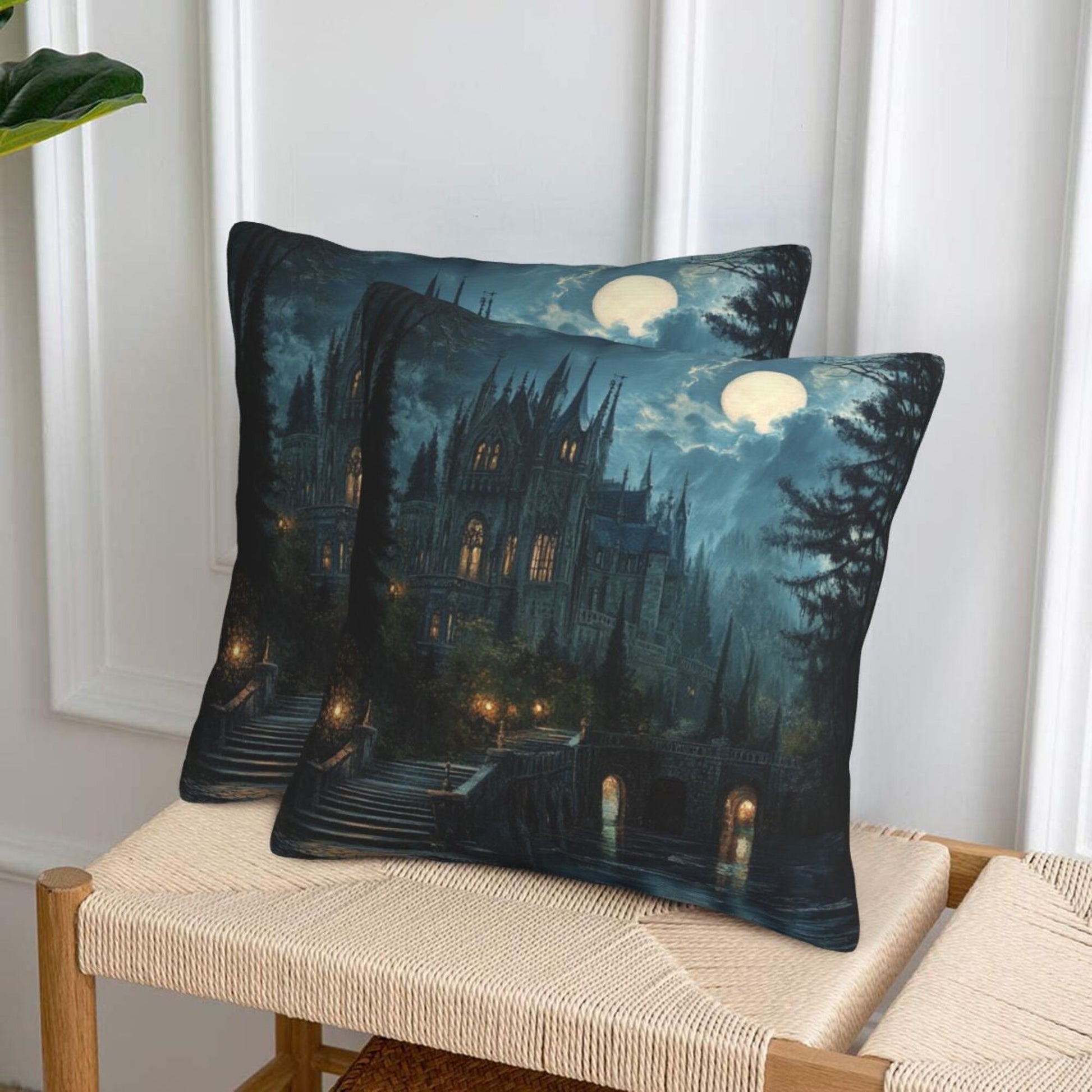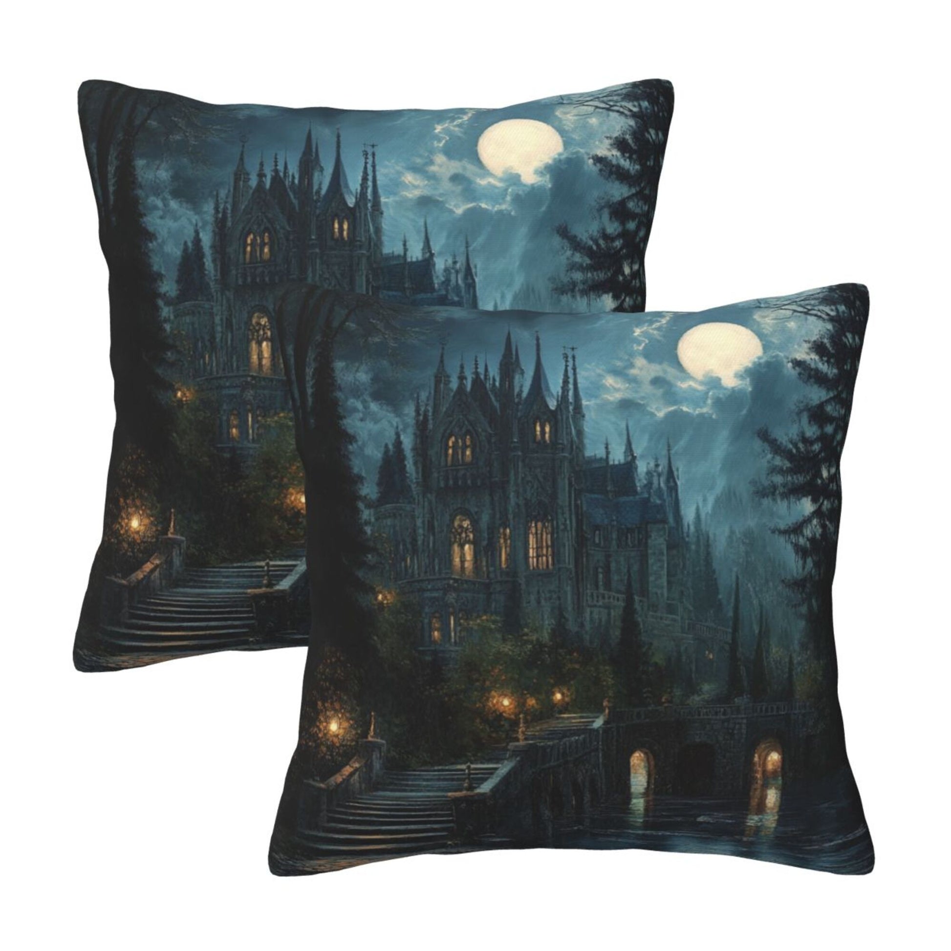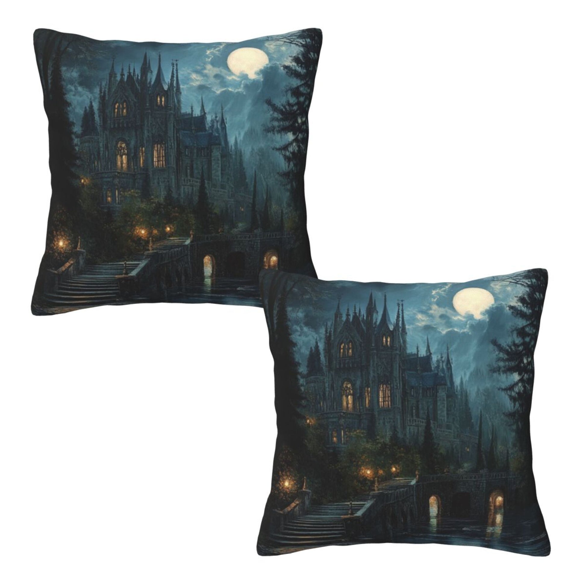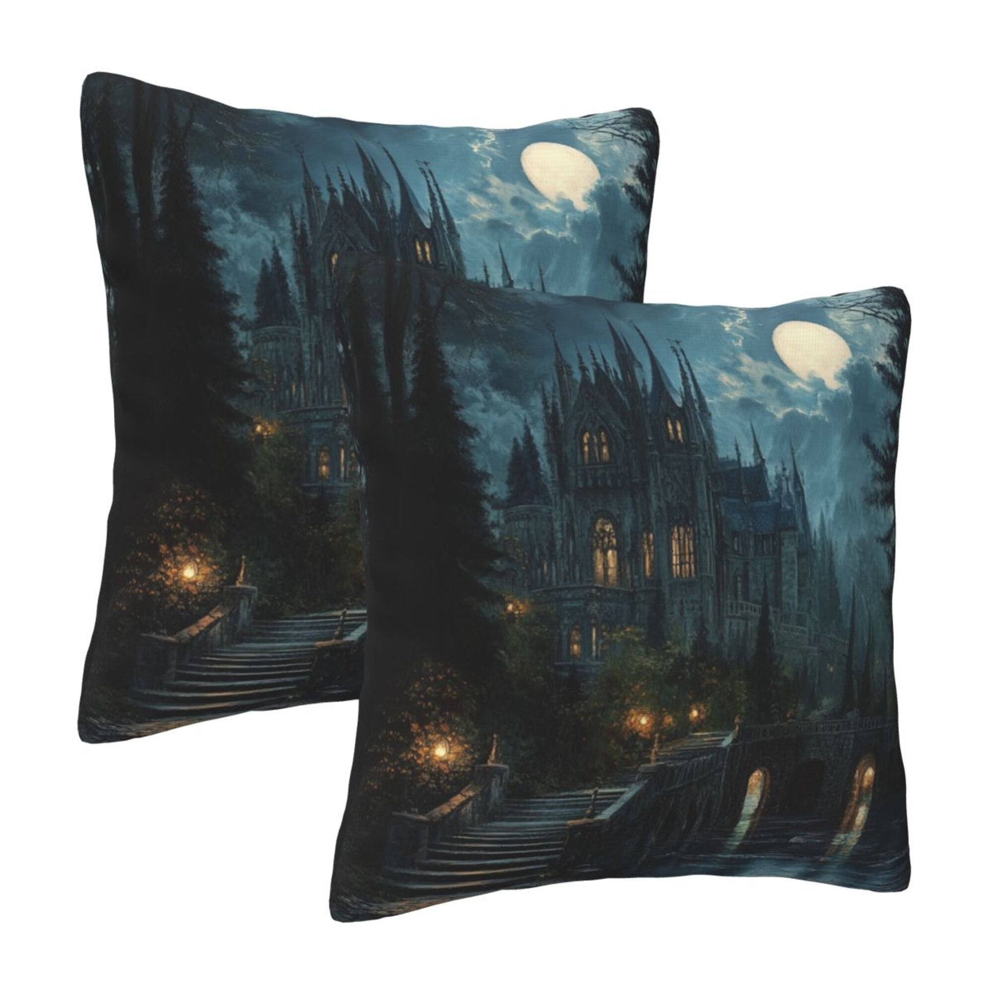 Set of 2 Gothic Castle Moonlight Pillow Covers – 18x18 Inches Dark Fantasy Decorative Cushion Cases (No Inserts)