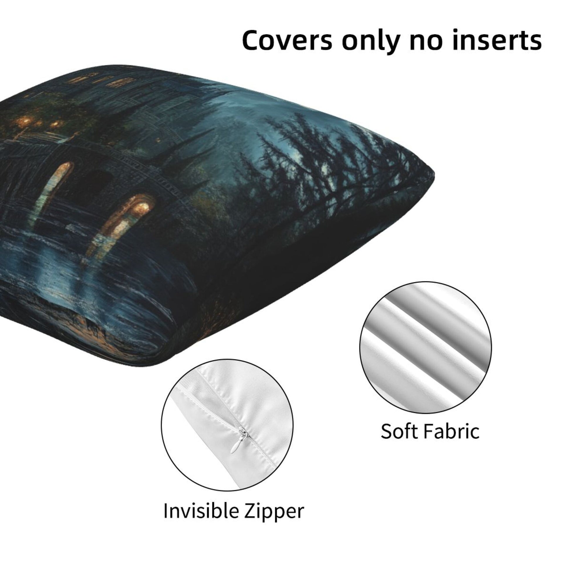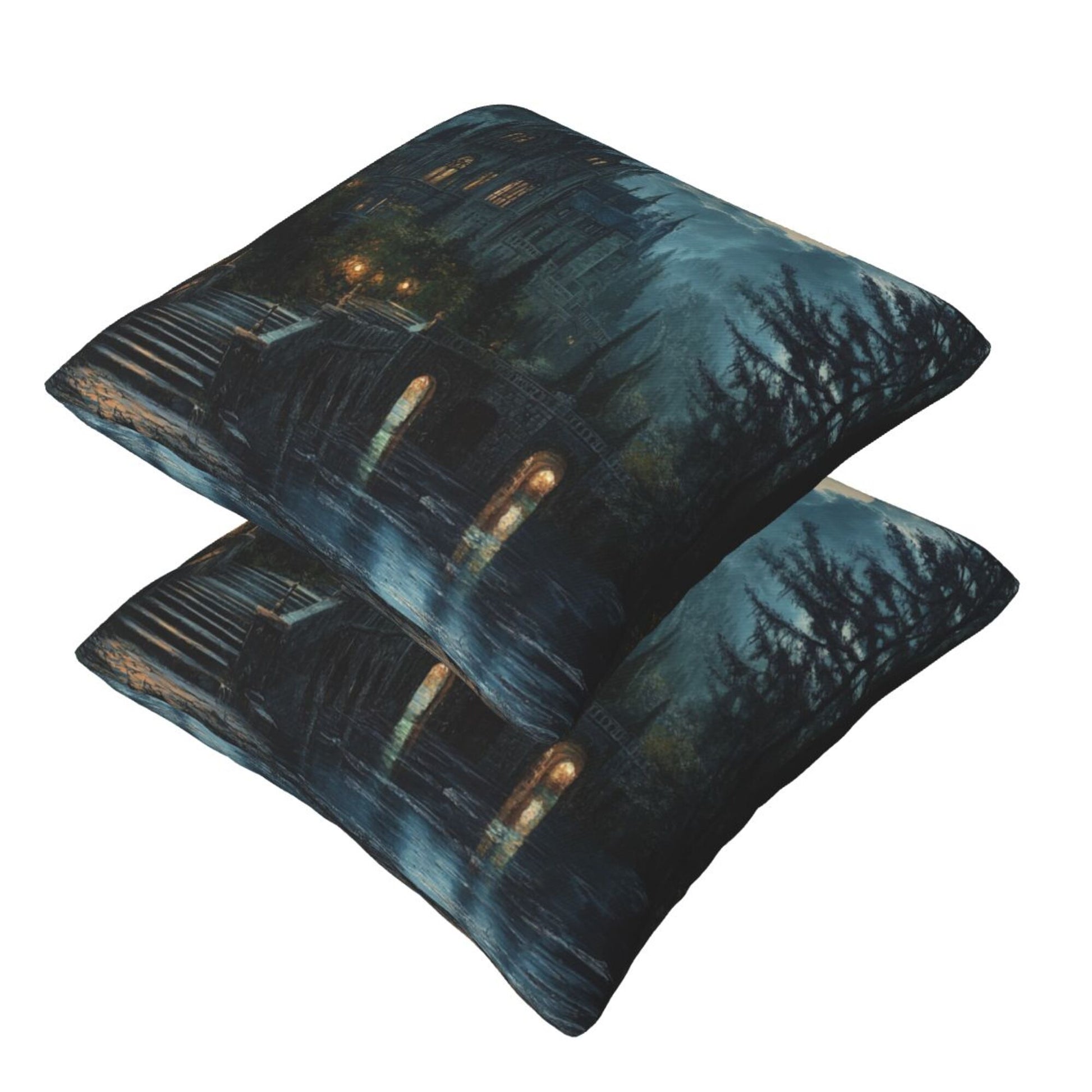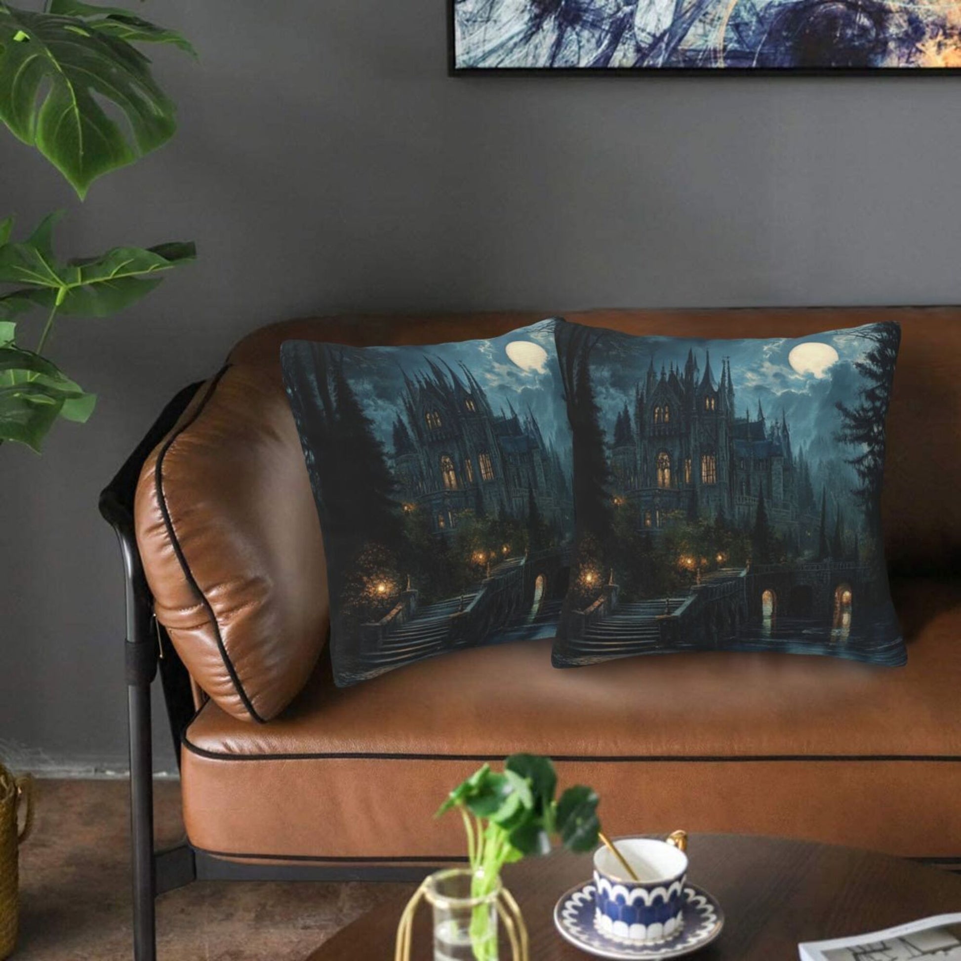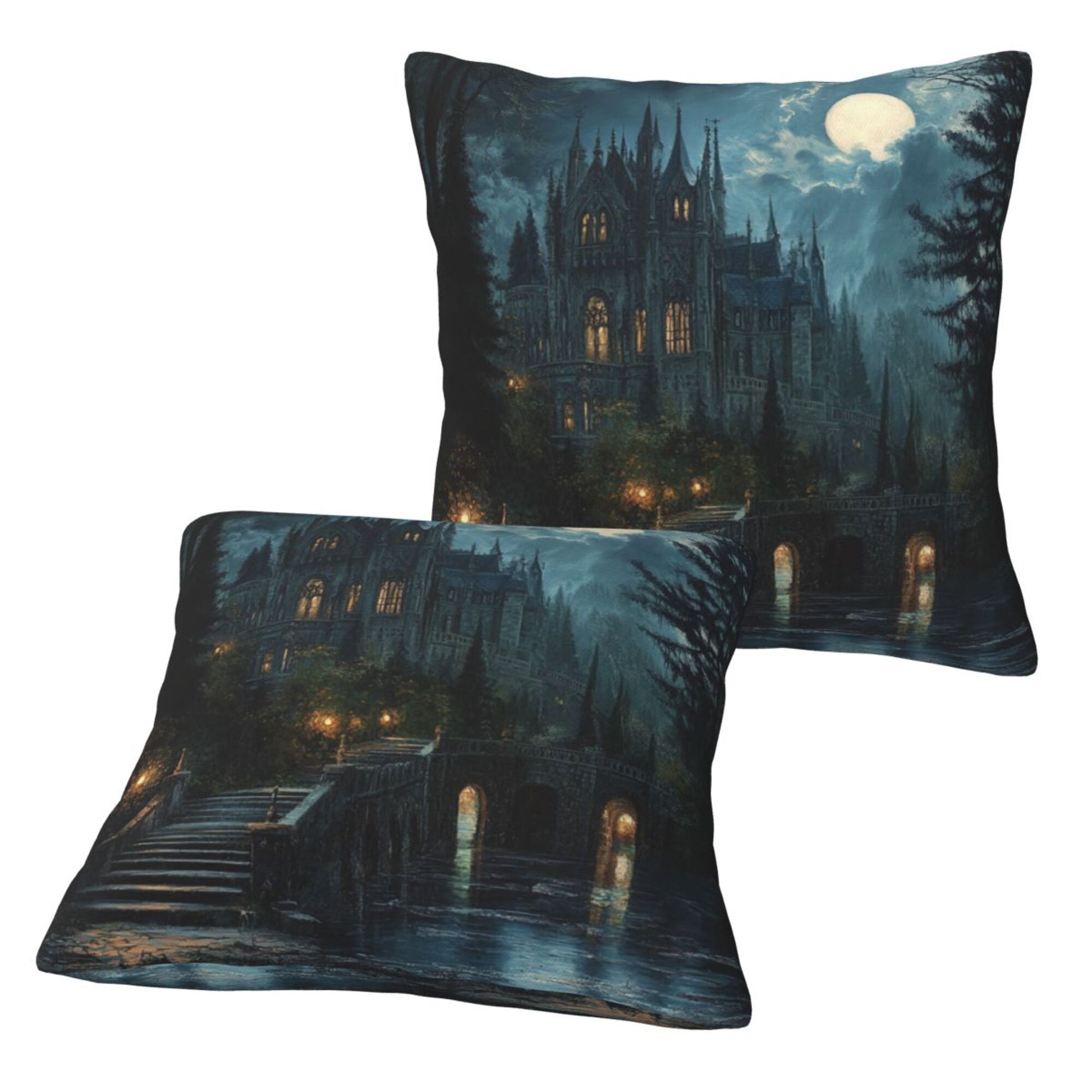 Set of 2 Gothic Castle Moonlight Pillow Covers – 18x18 Inches Dark Fantasy Decorative Cushion Cases (No Inserts)