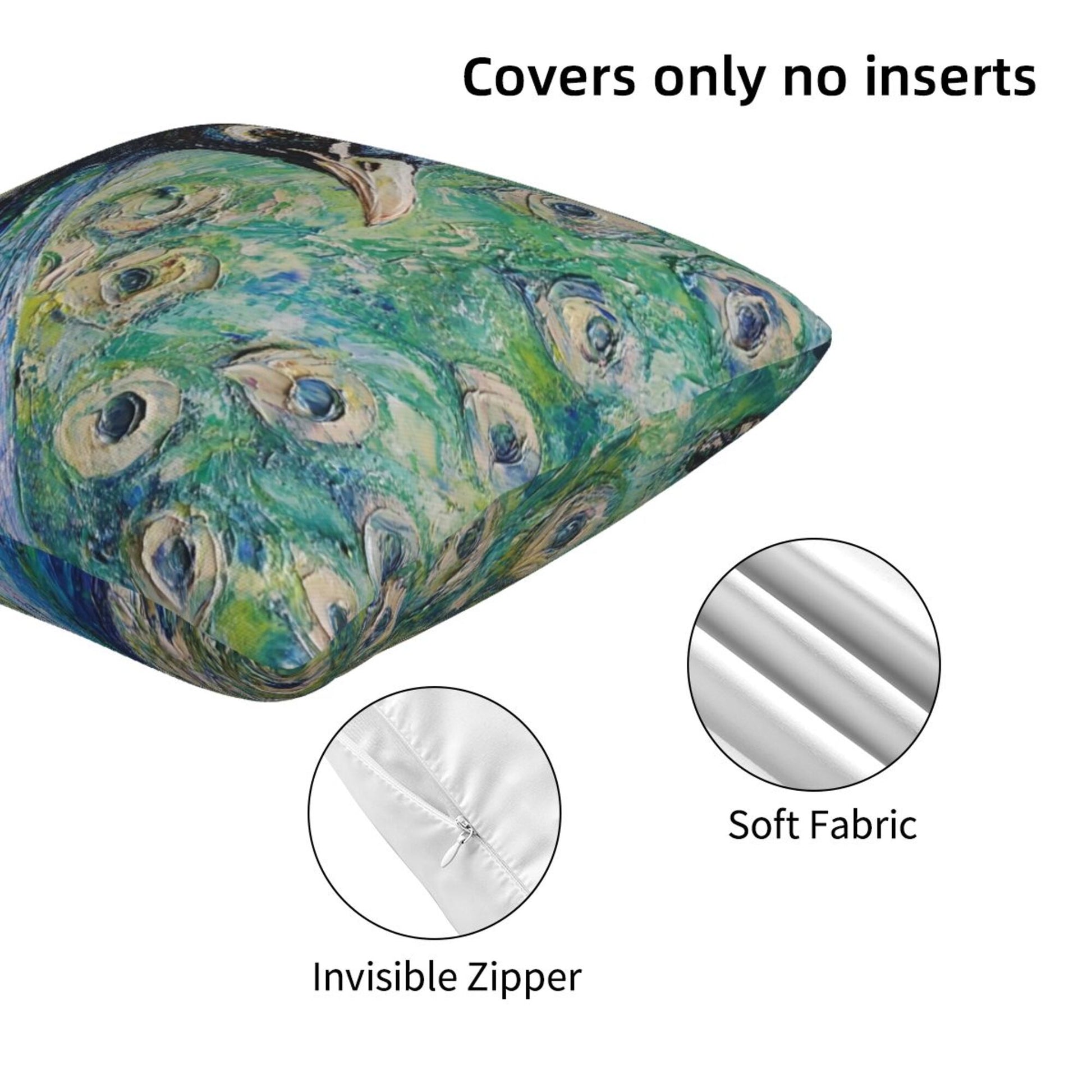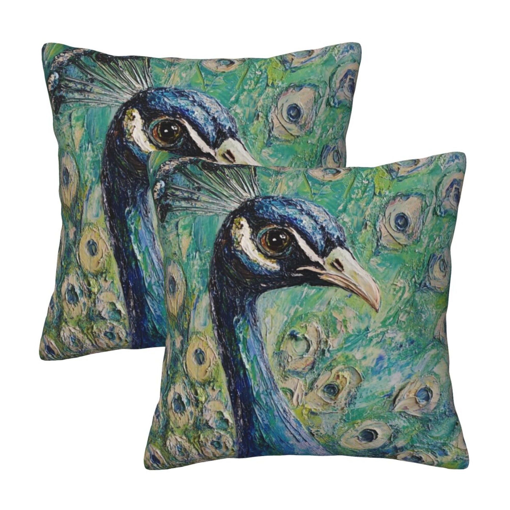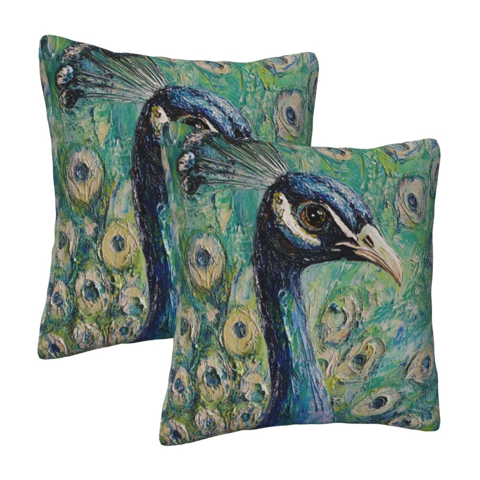 Set of 2 Peacock Oil Painting Style Pillow Covers – 18x18 Inches Elegant Artistic Throw Pillowcases for Sofa or Bed (No Inserts)
